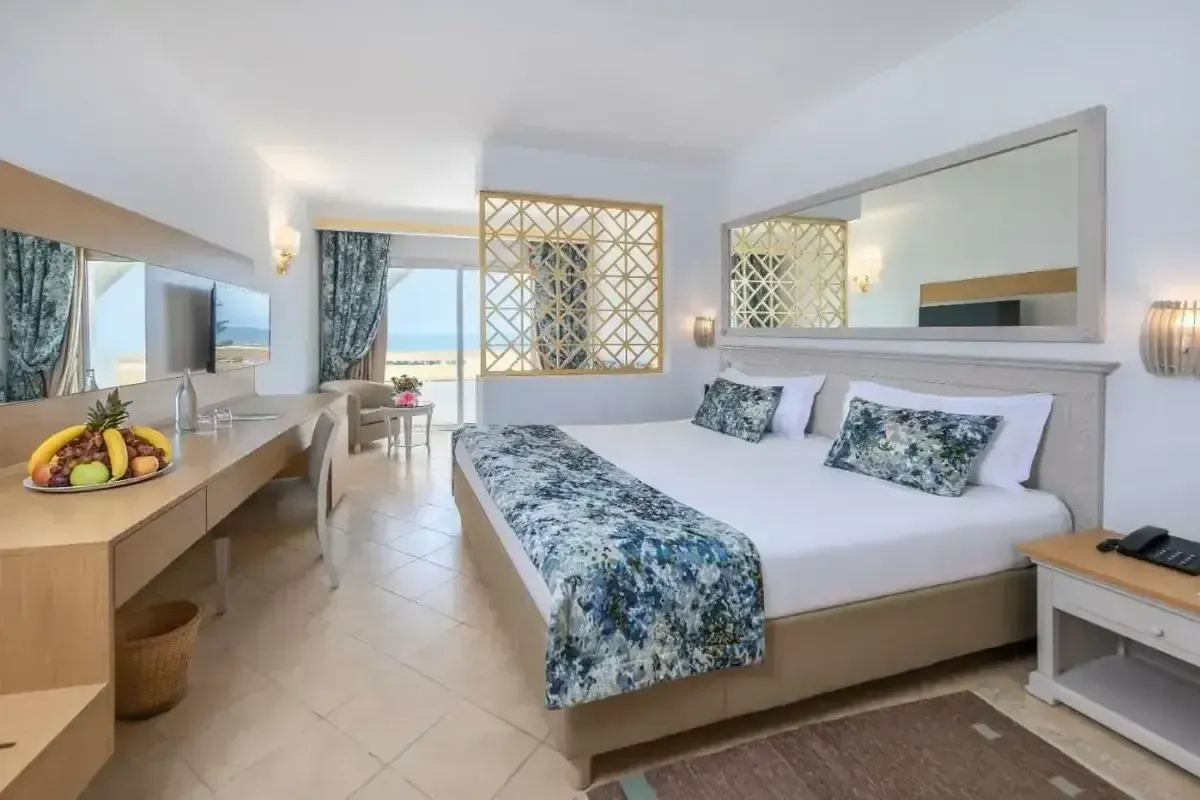 Trūktų renovacijos bendrose patalpose. Loby yra dirbtinių gėlių. Du viešbučiai vienoje teritorijoje. Nesidalina restoranu. Seifas registratūroje. 2 dinarai dienai. A la carte vieną kart savaitėje nemokamai. Sauna, hamamas ir sporto salė įskaičiuota į AI. Kambariai tvarkingi. Trečia lova - normali. Labai žalia teritorija - kaip parkas. Pirma linija, paplūdimys geras. Yra keli vandens kalneliai.