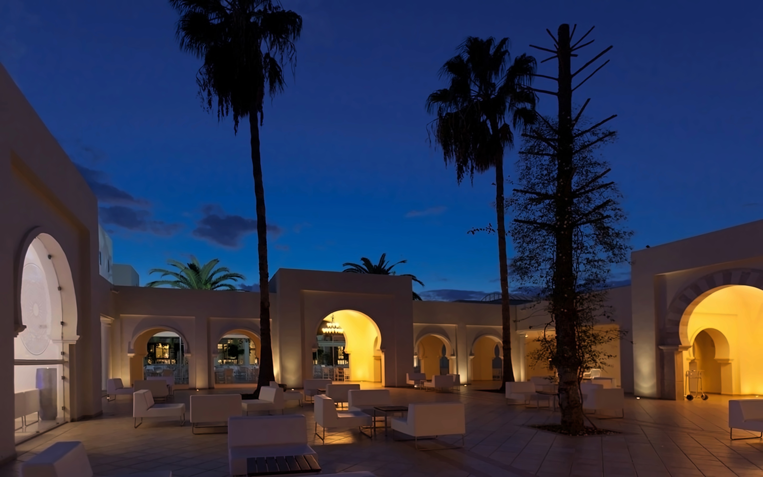 Spa Hotel SEABEL ALHAMBRA BEACH GOLF & SPA is located on the beach, in a park area of 11 hectares, in the north-east of Tunisia in the resort area of El Kantaoui. Built in Moorish style. The resort has many a la carte restaurants and bars, two outdoor, one outdoor and three children's pools, 17 tennis courts, a spa area with hammam and mini golf. For younger guests, there is a children's club and a playroom. A good option for a beach vacation, both for couples and families with children. Information about the structure of the hotel and about the room stock: The hotel opened in 1981, last renovated in 2015. The hotel consists of a four-story main building and a complex of one- and two-story bungalows.