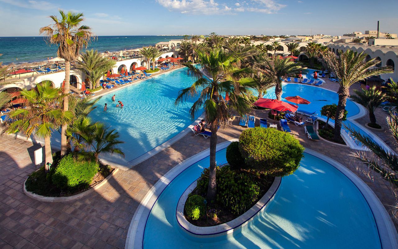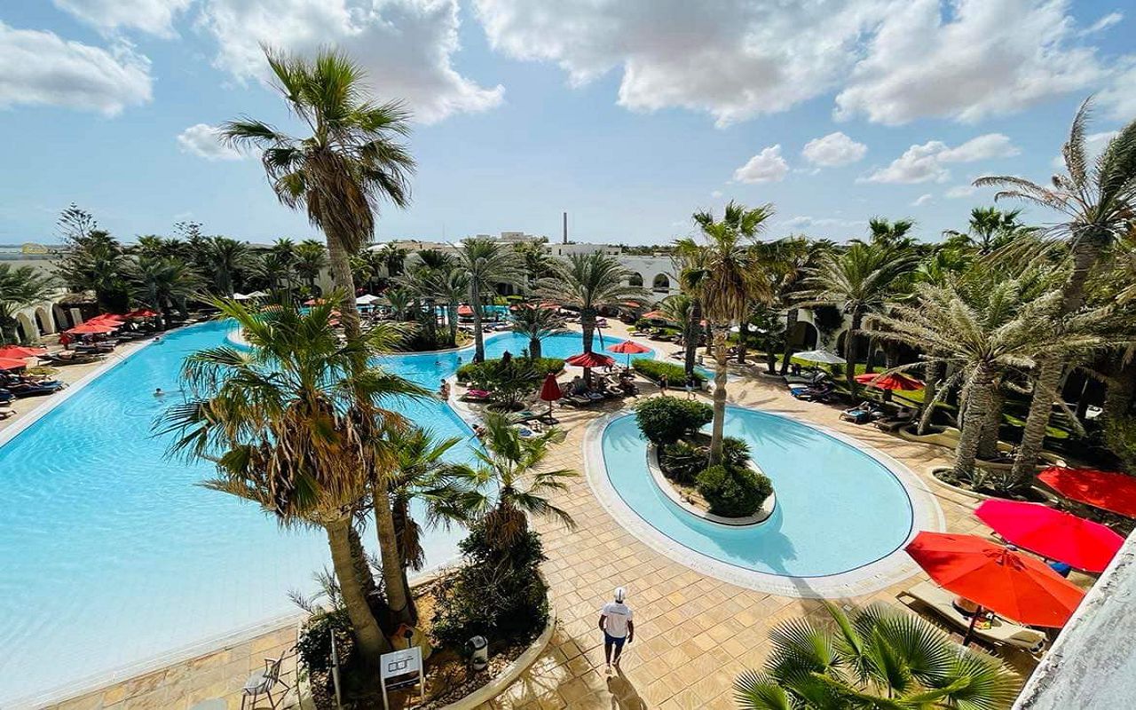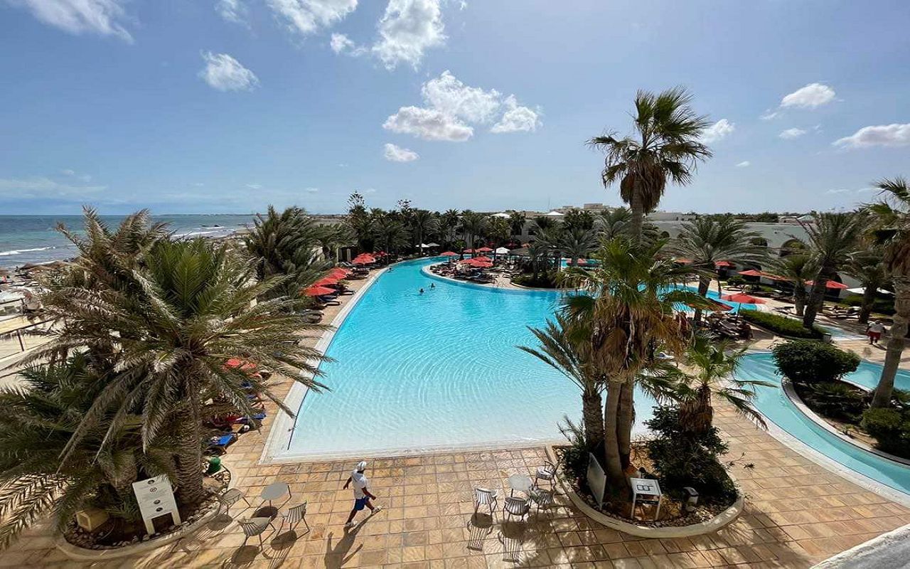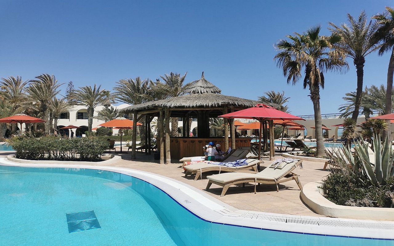 The hotel is located on the first coastline on the island of Djerba. The territory has outdoor swimming pools for adults and children, an indoor swimming pool, tennis courts, a gym, and a spa center. The hotel has a main and a la carte restaurant, cafe, bars in the lobby, on the beach and by the pool. The animation team provides entertainment throughout the day. The rooms are equipped with air conditioning, safe, TV, minibar, bathroom, balcony or terrace.