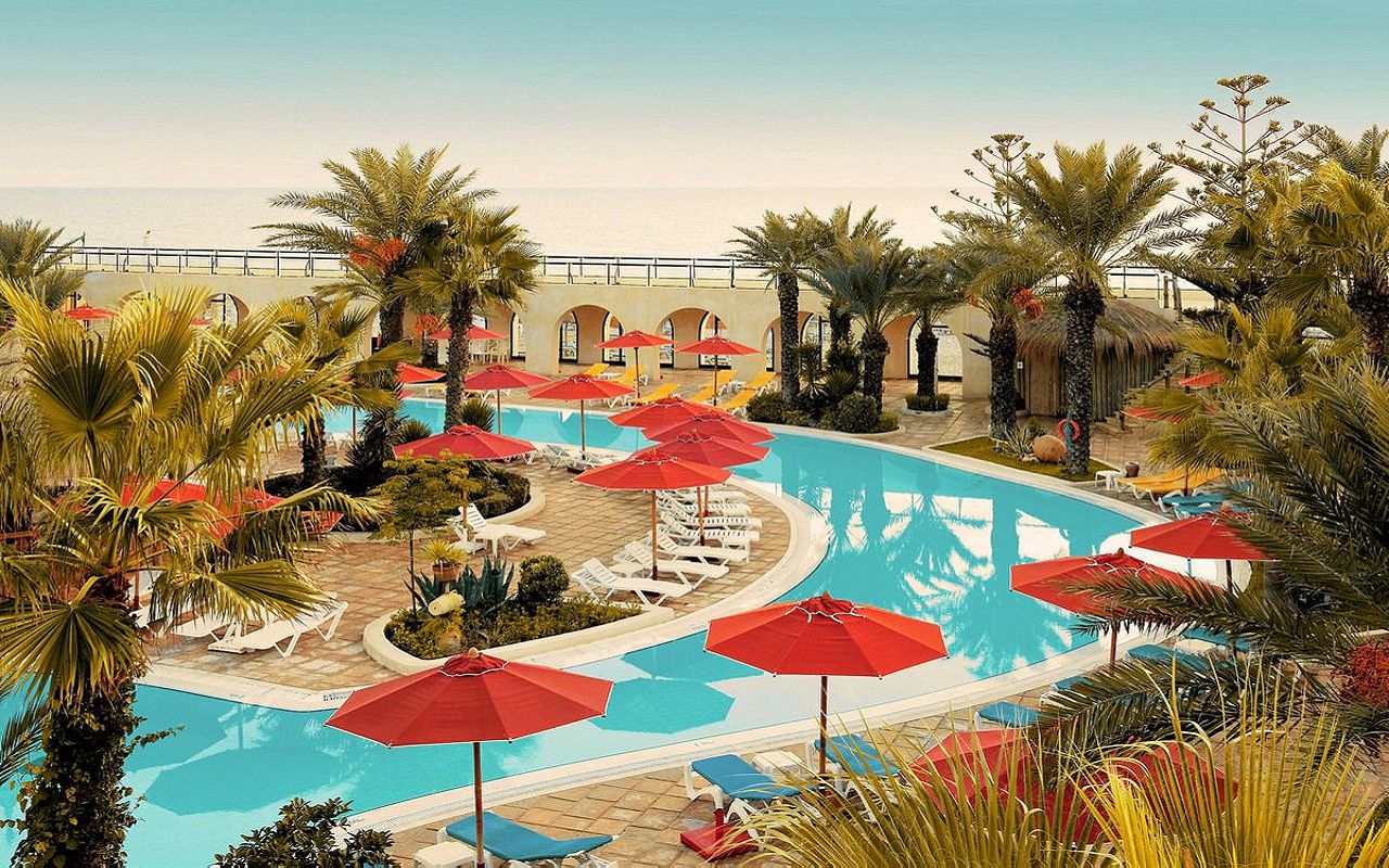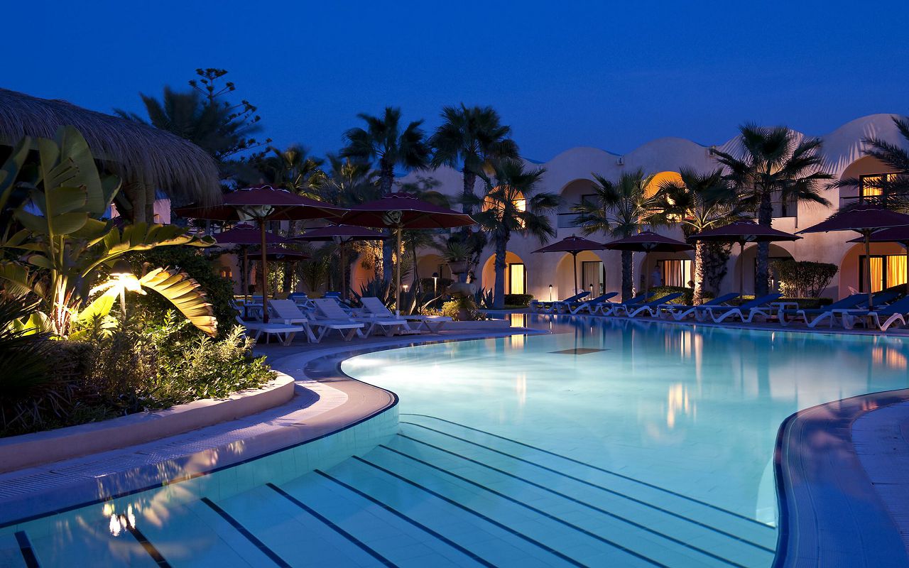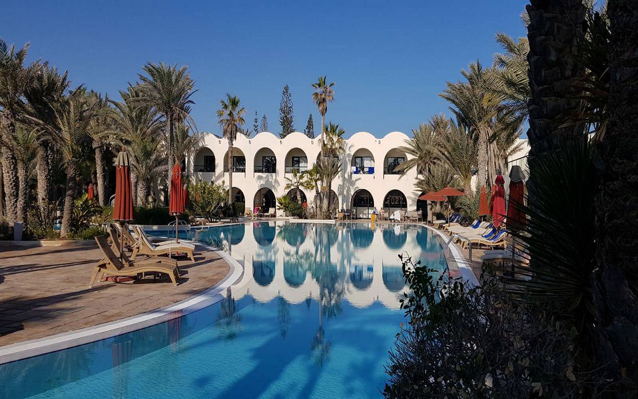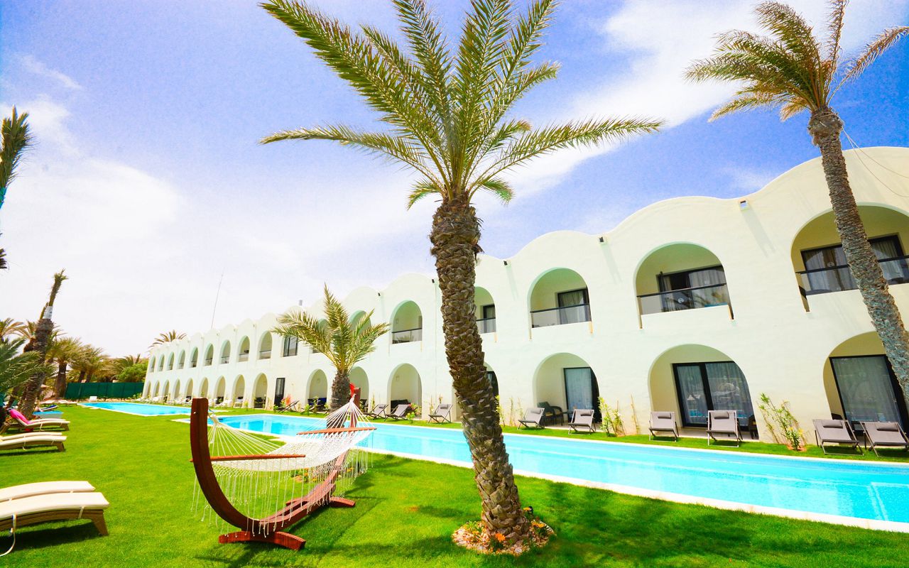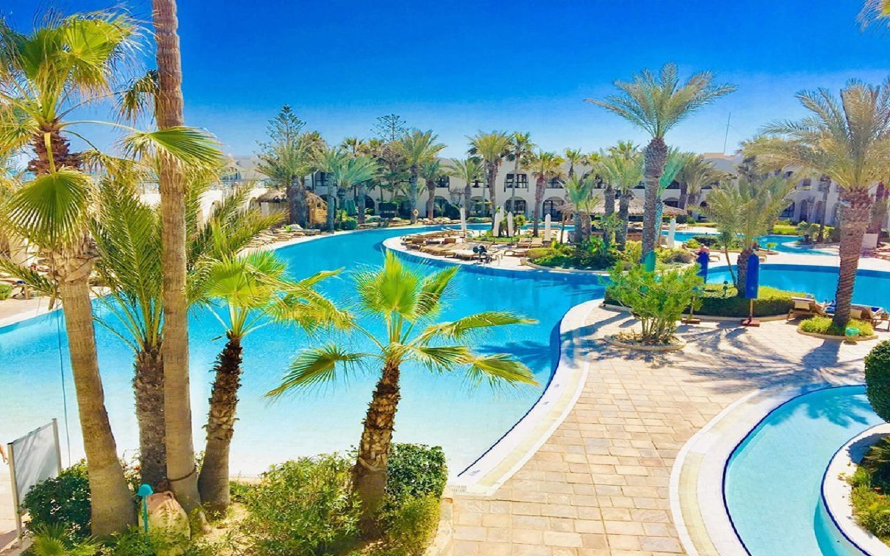 The hotel is located on the first coastline on the island of Djerba. The territory has outdoor swimming pools for adults and children, an indoor swimming pool, tennis courts, a gym, and a spa center. The hotel has a main and a la carte restaurant, cafe, bars in the lobby, on the beach and by the pool. The animation team provides entertainment throughout the day. The rooms are equipped with air conditioning, safe, TV, minibar, bathroom, balcony or terrace.