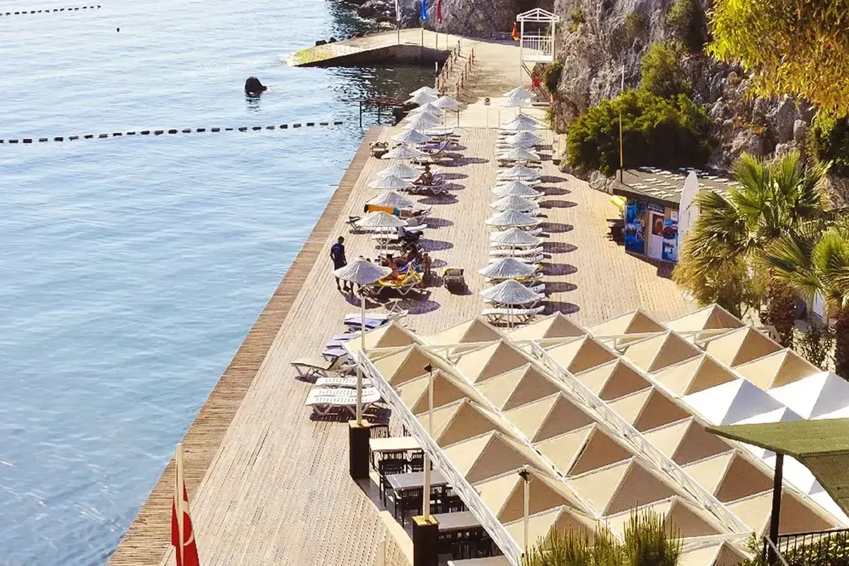 Apie 110 km nuo Bodrumo oro uosto, apie 75 km nuo Izmiro oro uosto, apie 2 km iki Kušadasio miesto centro, ant jūros kranto. Apie 15 km – iki antikinio Efeso miesto.