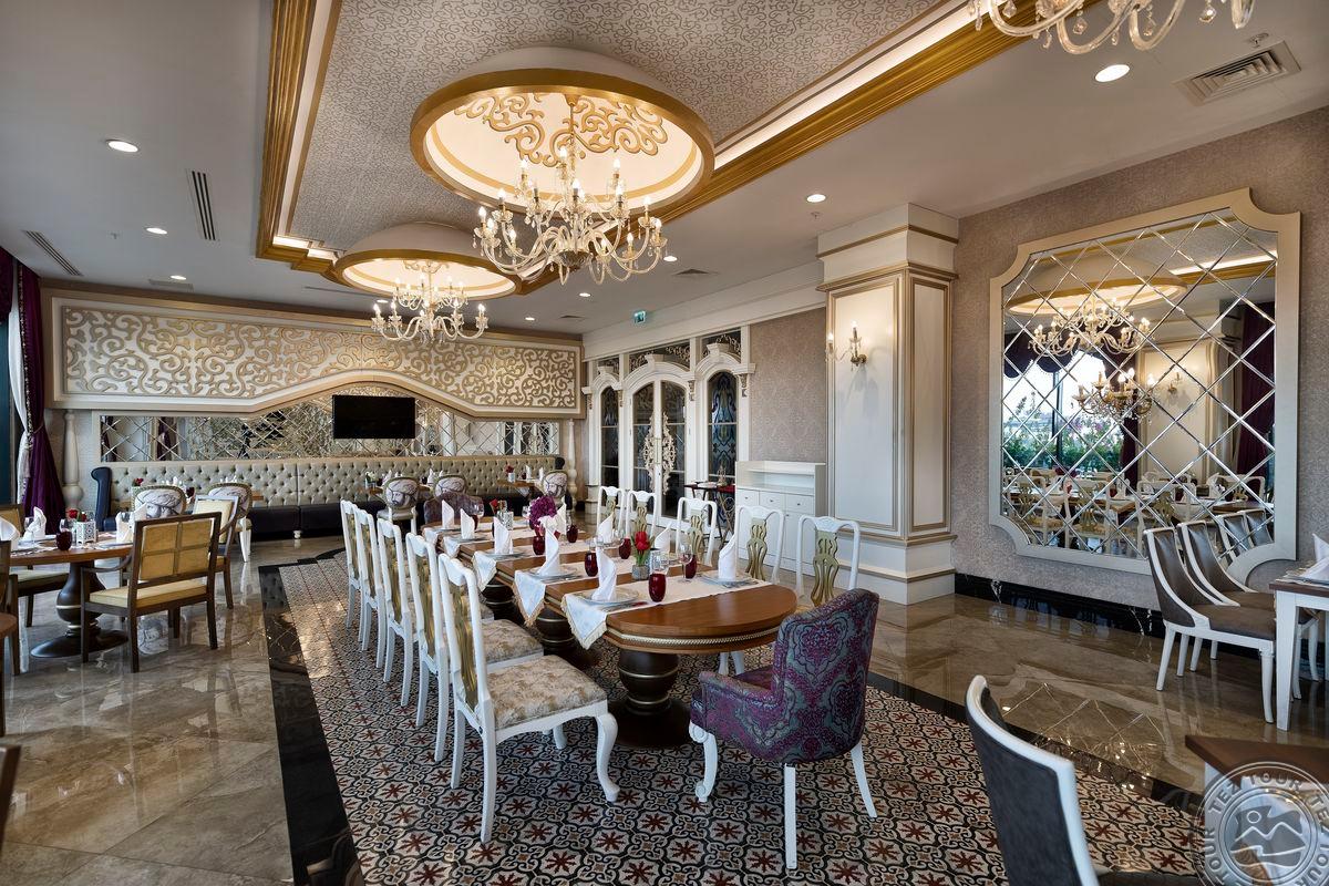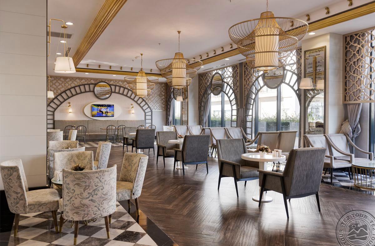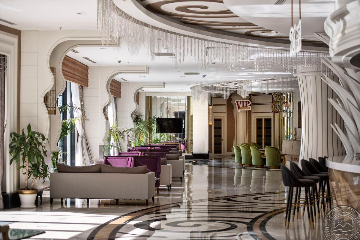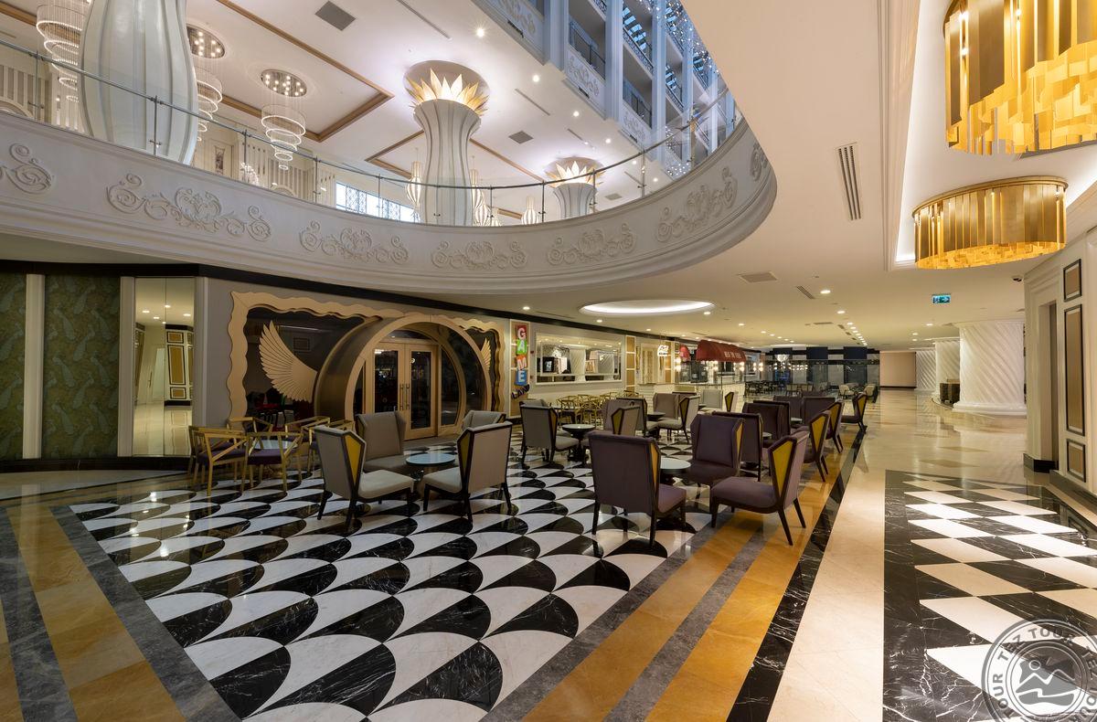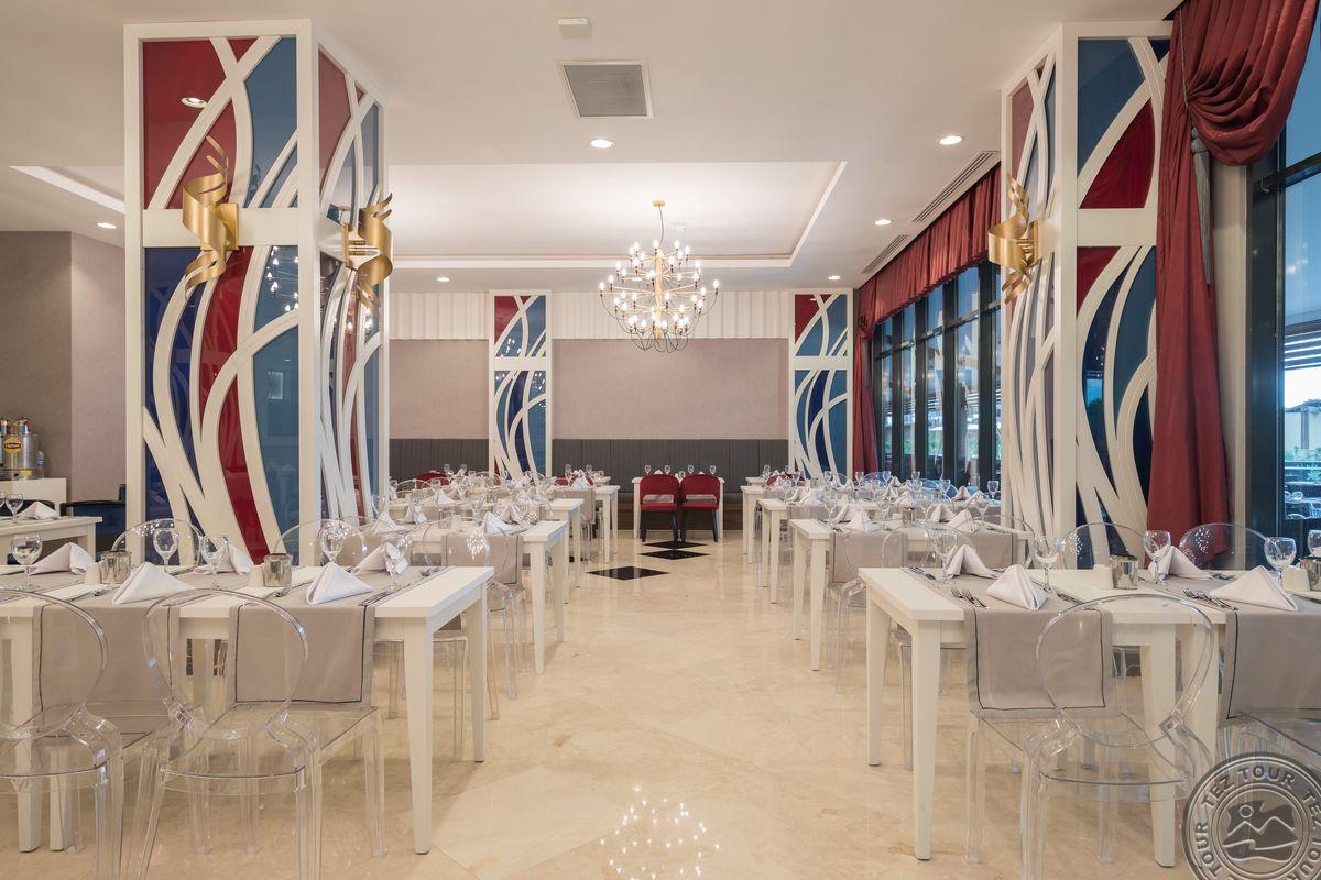 Gražus didelis fojė, jauki ir žalia teritorija. Nedaug pramogų vaikams, pagrinde skirta suaugusiems. Dauguma gyventojų – kazachstaniečiai. Viešbutis turi 6 aukštus. Chalatai paliekami už depozitą. Visi baseinai yra šildomi. Yra žuvies a la carte restoranas, kur vakarienė kainuoja apie 30 eurų asmeniui. Nuo gegužės pabaigos animacija rengiama amfiteatre, kitu metu vyksta pagrindiniame viešbučio pastate. Vaikams skirtas nemokamas Una parkas. Jūros įbridimas greitai gilėja. Gegužės mėnesį paplūdimyje atsidaro prieplauka. Viešbutyje yra 2 vidaus šildomi baseinai ir 4 vidaus šildomi baseinai. Mini baras kasdien papildomas gaiviaisiais gėrimais ir alumi.