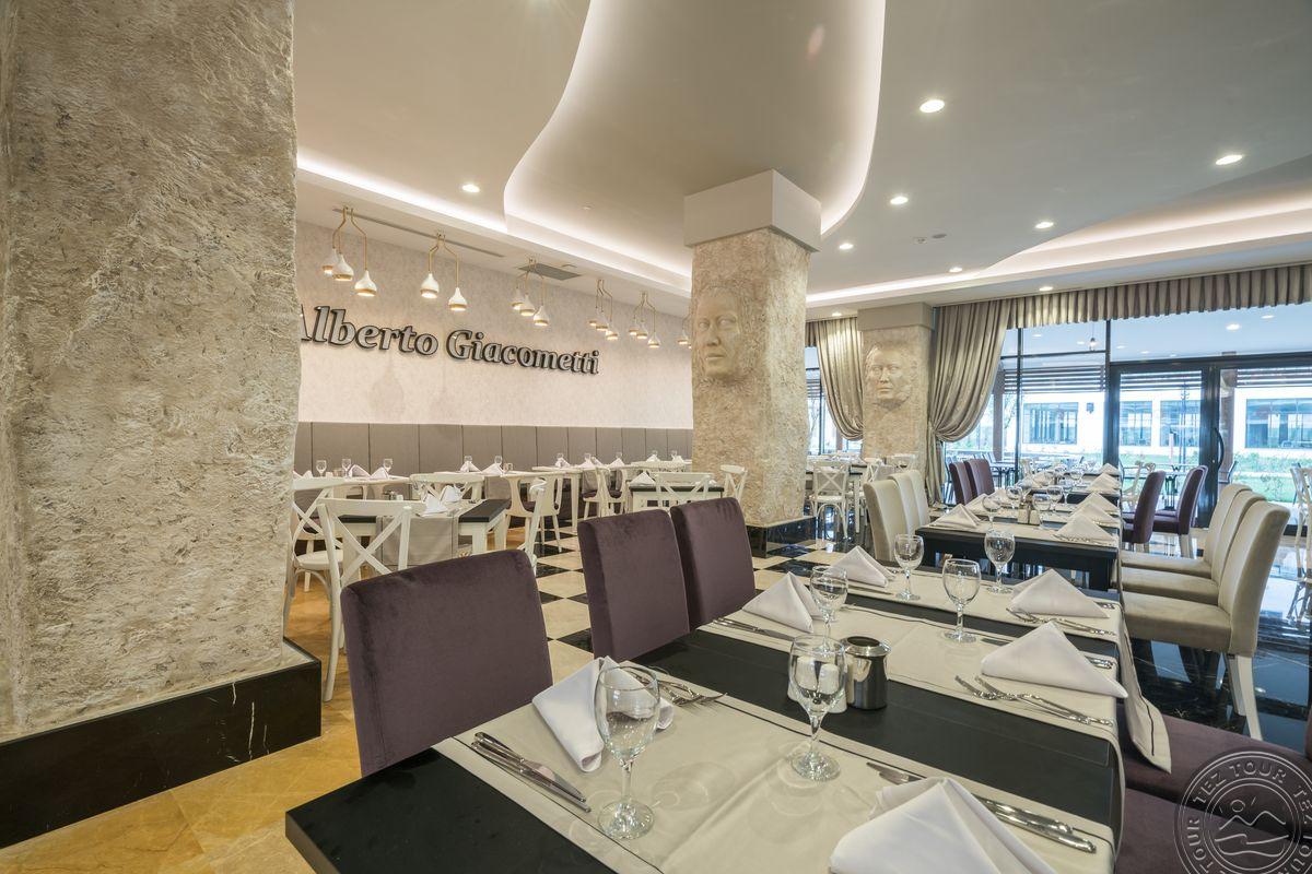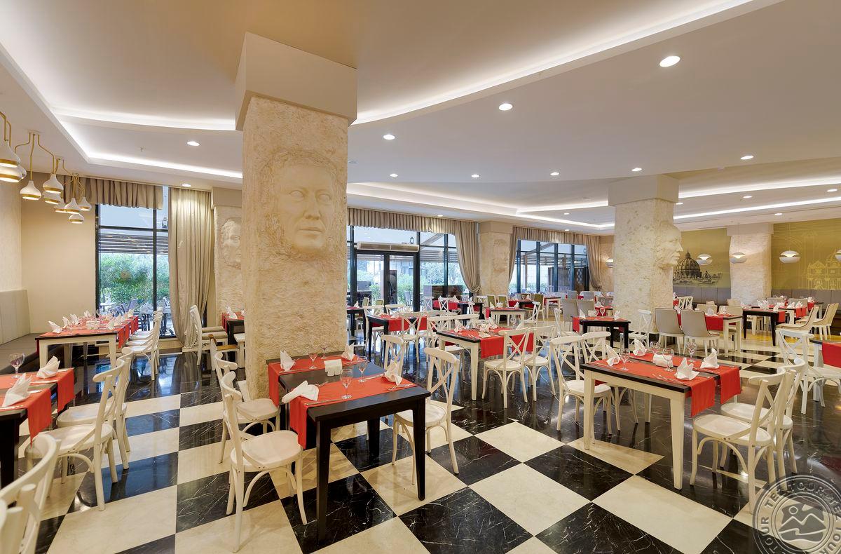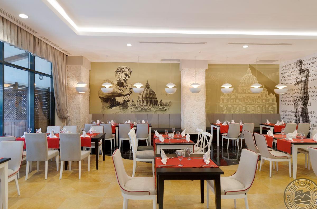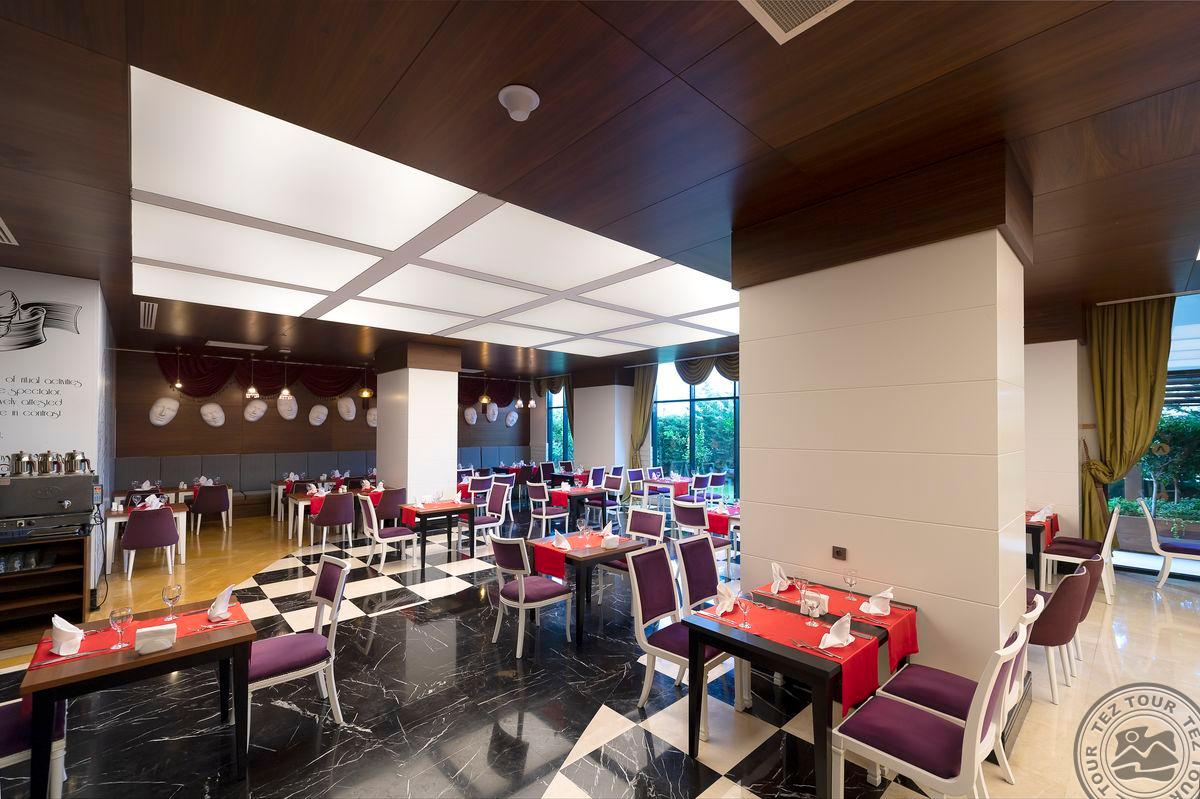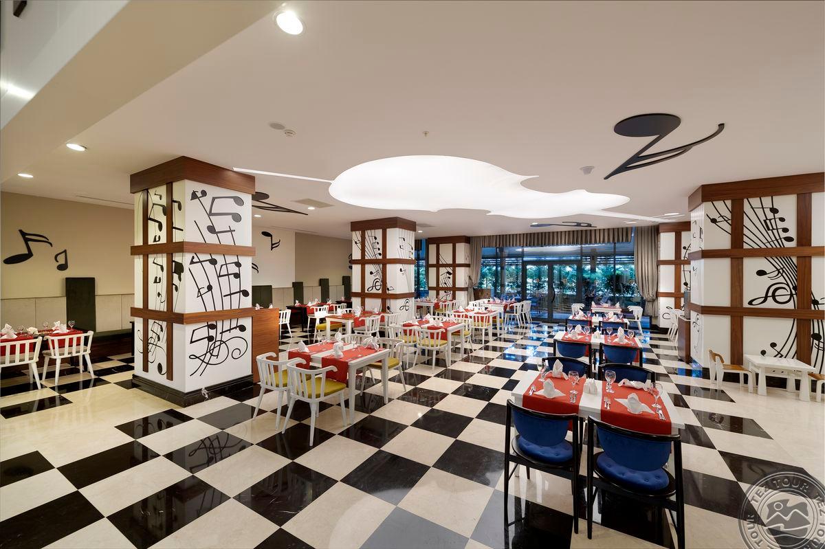 • a la carte restoranai: 5 (žuvies nuo 01.06 iki 15.10, turkiškas, italų, meksikietiškas, Tolimųjų Rytų - pagal išankstinę rezervaciją, vieną restoraną vieną kartą galima aplankyti nemokamai)