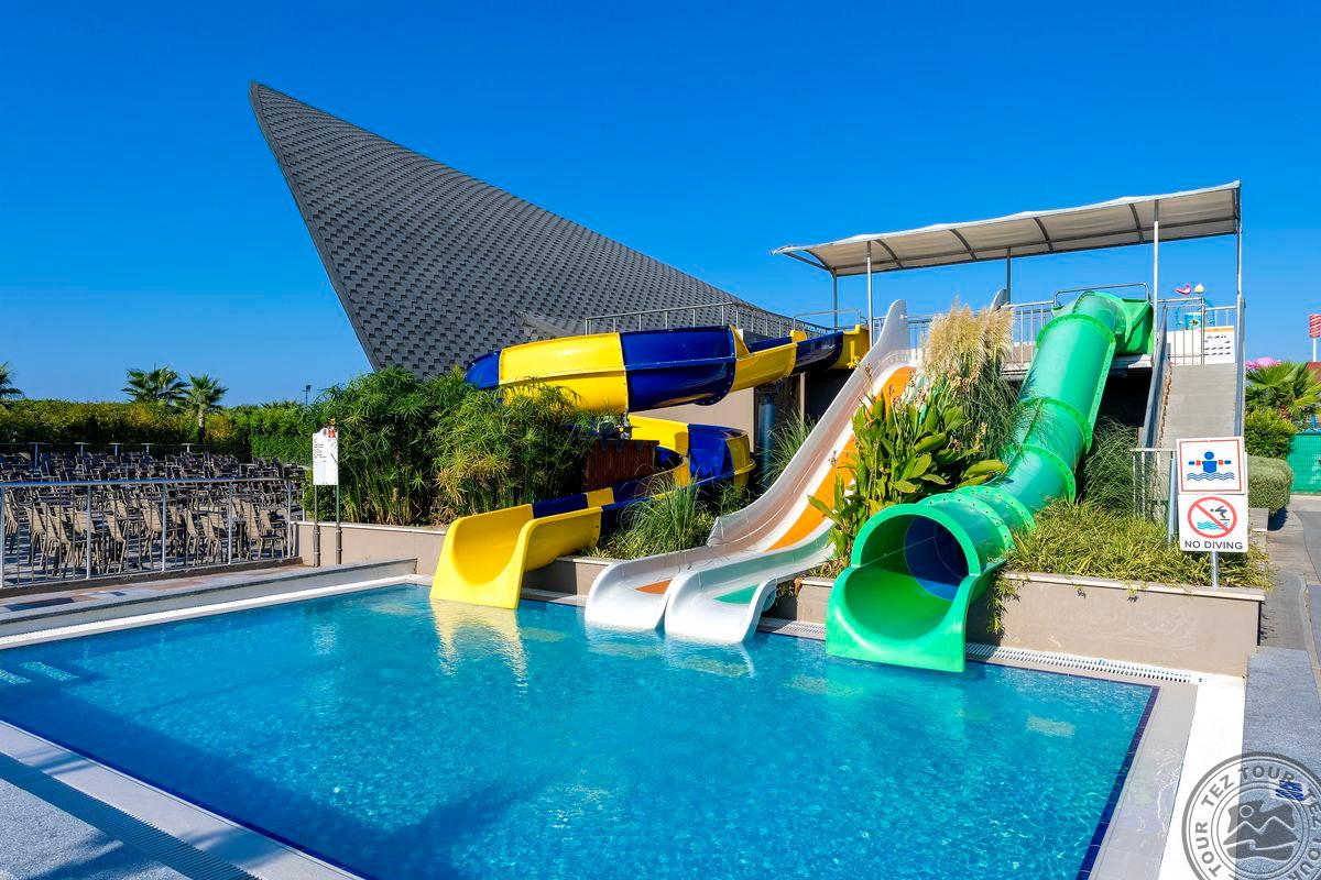 Viešbutyje visoje teritorijoje nemokamas internetas, turi baseiną n-18, turi luna parką, aqua parkas tik nuo 120cm. Šaltuoju sezonu šildomas olimpinis ir uždari baseinai. Viešbutyje aktyvi animacija. Viešbutis taip pat dirba ir žiemą. Taip pat pagrindiniame restorane yra n18 vieta. Alergiškiems ar mėsos nevalgantiems maistą gamina pagal užklausimą.Vaikiško vežimėlio nuoma - 10 eurų dienai. Turi neįgaliems pritaikytų kambarių. Turi banguojantį baseiną. Teritorija sutvarkyta tik viešbučio teritorijoje, aplink vaizdas tikrai nejaukus.