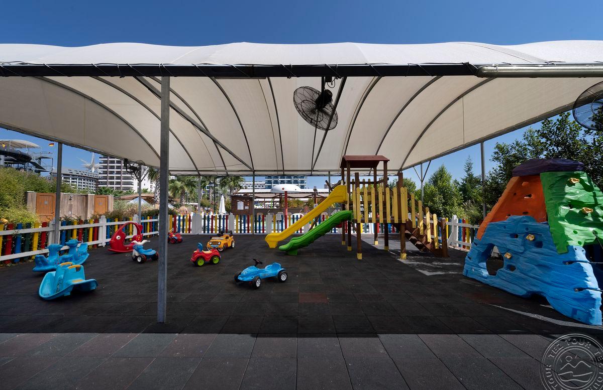 Vandens parkas labiau skirtas suaugusiems, tačiau ir vaikams yra pramogų, tokių kaip mašinėlės, apžvalgos ratas ir kiti atrakcionai, kurie yra nemokami. Family kambarys yra tvarkingas ir erdvus, su atskira drabužine, o Standard kambarys taip pat erdvus, su double ir single lovomis, balkonu, tačiau vonios kambariai yra gana maži. Mini bare yra gaivieji gėrimai ir alus, ir jis kasdien pildomas. Chalatai kambariuose suteikiami už depozitą. Viešbutyje sakė, kad visi baseinai yra šildomi, tačiau tikrai ne. Yra suaugusiųjų baseinas, taip pat greitai gilėjantis paplūdimys, kas galbūt nėra labai patogu vaikams. Teritorija yra apželdinta.