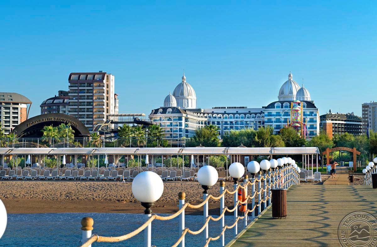"ADALYA ELITE LARA" tai 5 žvaigždučių viešbutis, įsikūręs ant jūros kranto. Viešbutyje graži teritorija, pilna įvairių pramogų ir poilsio erdvių. Siūlomas didelis asortimentas aktyvaus poilsio - nuo SPA procedūrų iki tinklinio. Patogūs ir erdvūs kambariai visai šeimai. Rekomenduojamas šeimoms ir poroms.