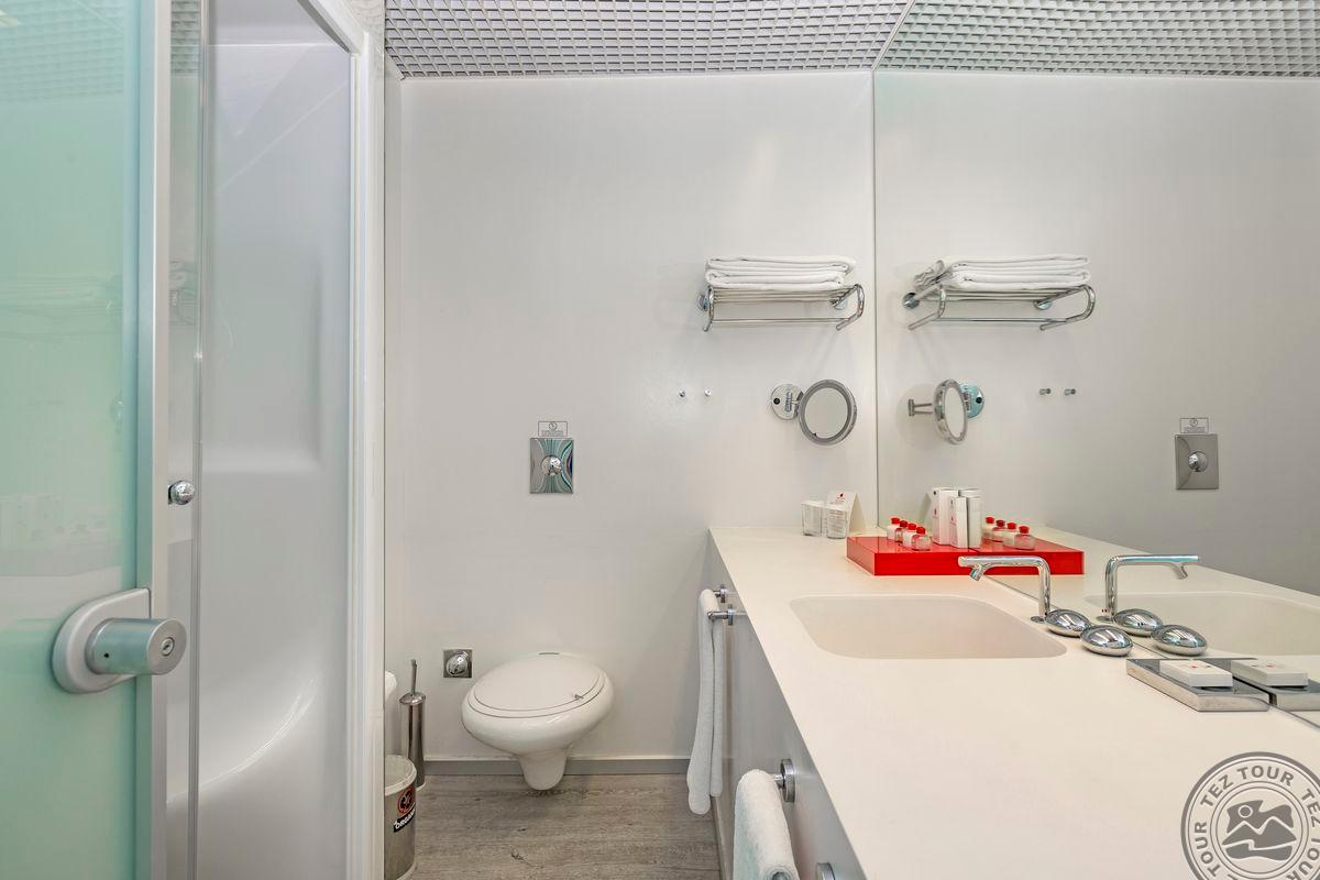 450 design room tipo numerių (su šoniniu vaizdu į jūrą, 6 iš jų pritaikyti asmenims su negalia (maks. 2 asm.) maks. 3 asm., 64 m2).