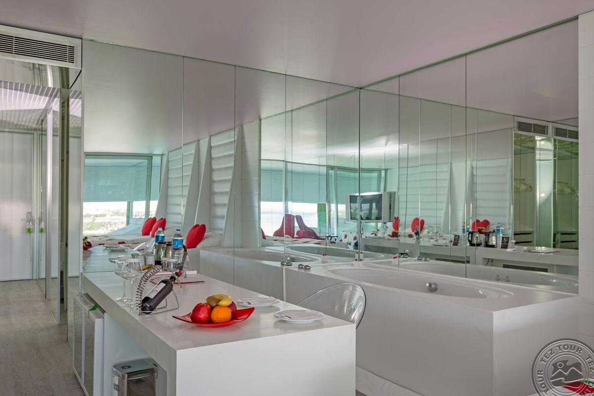 Senas viešbutis. Ilsisi daug vyresnio amžiaus žmonių. Verta atvykti trumpiau nei savaitei. Teritorija žalia, didelė. Įdomus fojė zonos interjeras, bet jaučiasi nemalonus kvapas. Visur veidrodžiai. Bendri koridoriai modernūs, su šiek tiek augalų, juose groja muzika. Koridoriai tarp numerių tamsūs. Kambariuose vyrauja balta ir raudona spalvos. „Red Bull“ mini bare mokamas. Kad sutvarkytų kambarį, reikia paspausti mygtuką. Pirmoje linijoje yra Adam ir Eve vilos. Eve Villa – erdvus dviejų aukštų numeris su daug veidrodžių. Pirmame aukšte – svetainė, antrame – miegamasis. Apšvietimas raudonas, yra sūkurinė vonia, pirtis, 2 vonios kambariai. Suite tipo kambarys labai erdvus, turi 2 miegamuosius, labai didelę terasą su labai geru vaizdu į jūrą. Standartiniam kambary yra dvigulė ir viengulė lovos, balkonas su dideliais gultais, garso izoliacija. Masažai mokami, atliekami kambariuose. Prie baseino – daug gultų, groja muzika. Šildomas baseinas viduje. Didelis pagrindinis restoranas. Labai didelis užkandžių baras. Yra à la carte restoranas, kuriame valgoma tamsoje, afrodiziakų à la carte restoranas su lovomis, kur galima paspausti mygtuką, kad niekas nebetrukdytų ir nebeneštų maisto. Visi à la carte restoranai kainuoja po 25 €. Kas vakarą vyksta diskotekos ir vakarėliai. Didelė automobilių stovėjimo aikštelė. Kabanos mokamos (80-120 €).