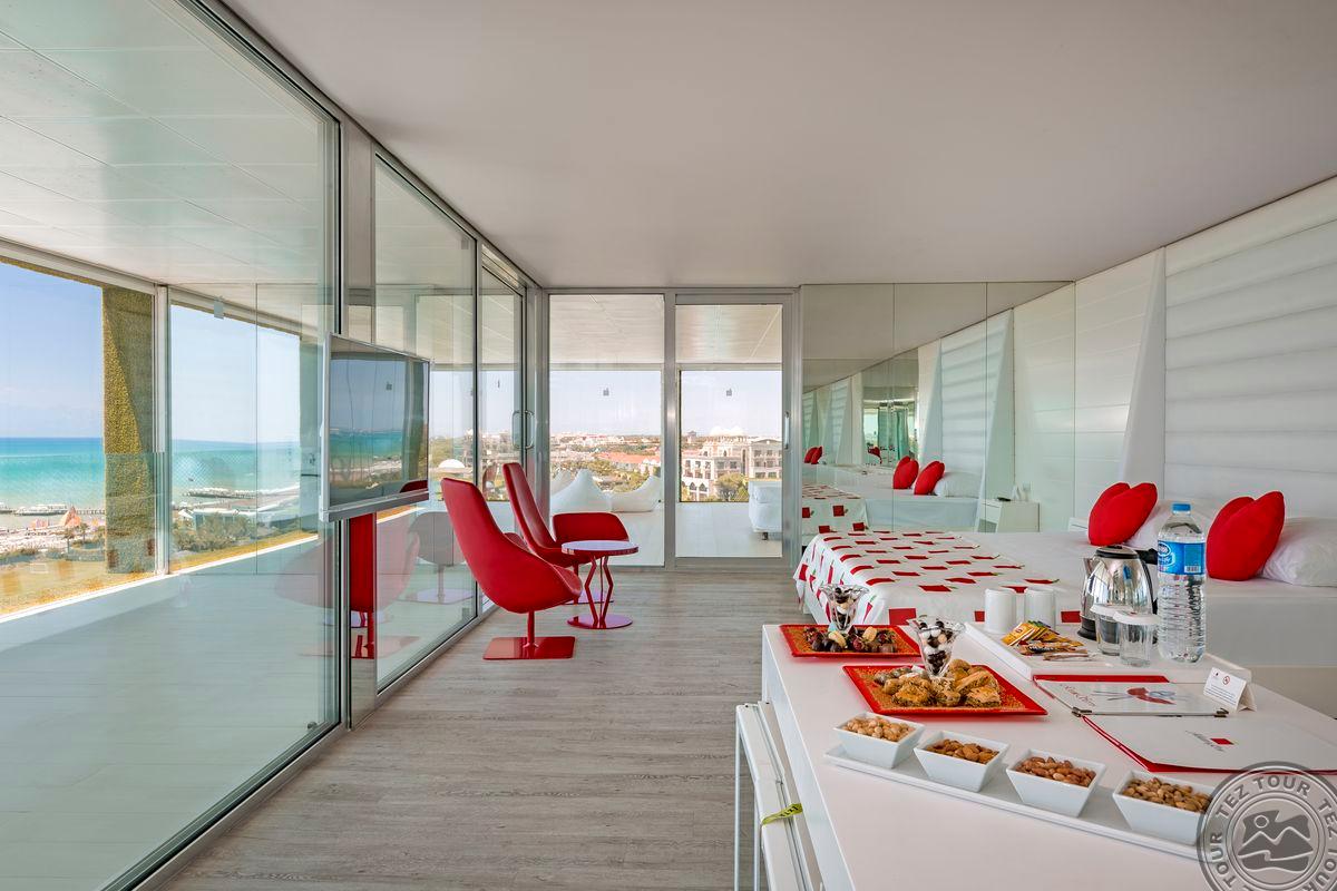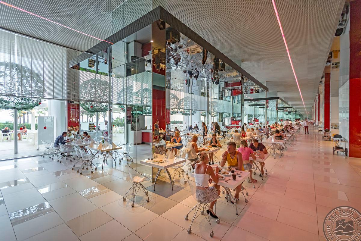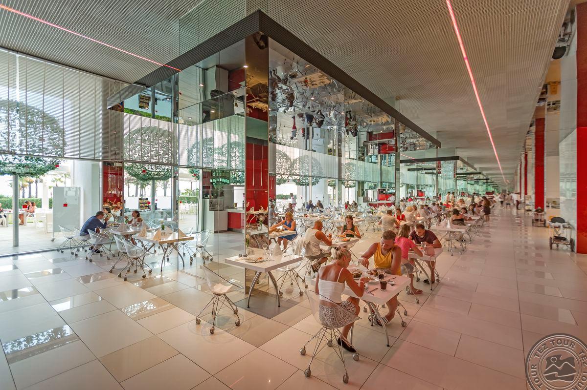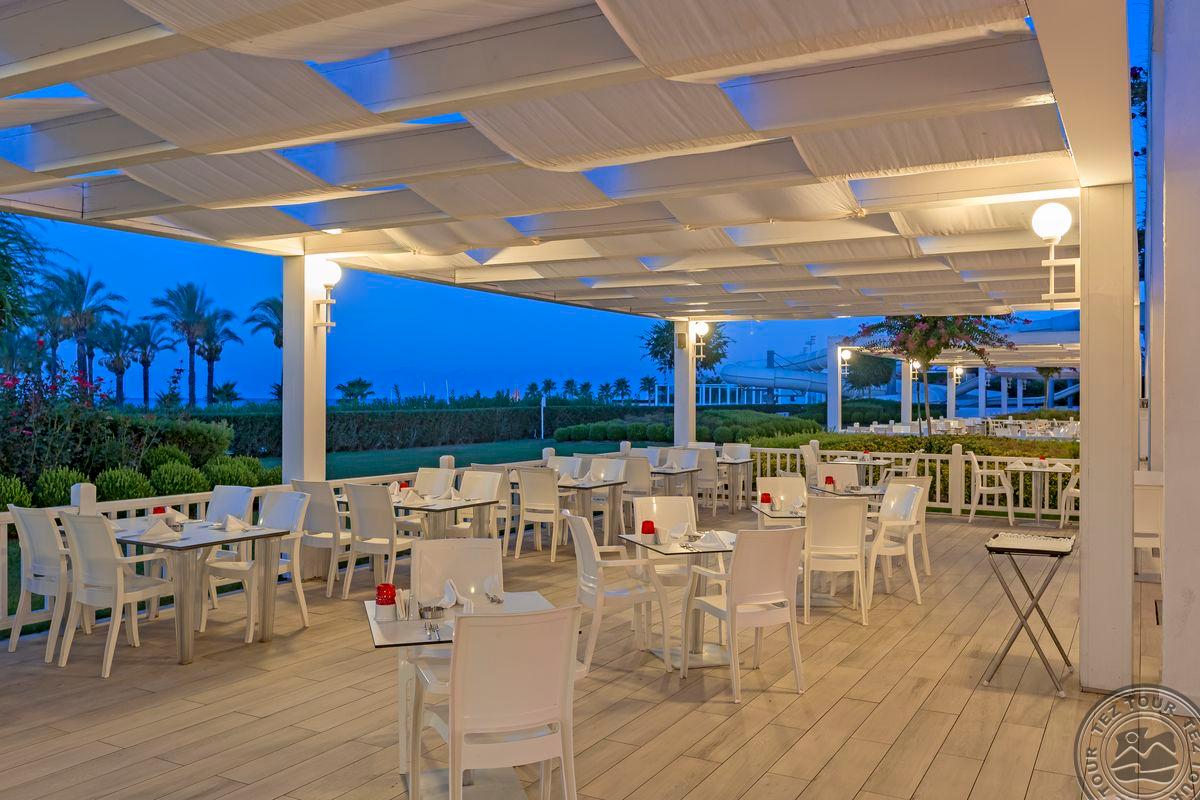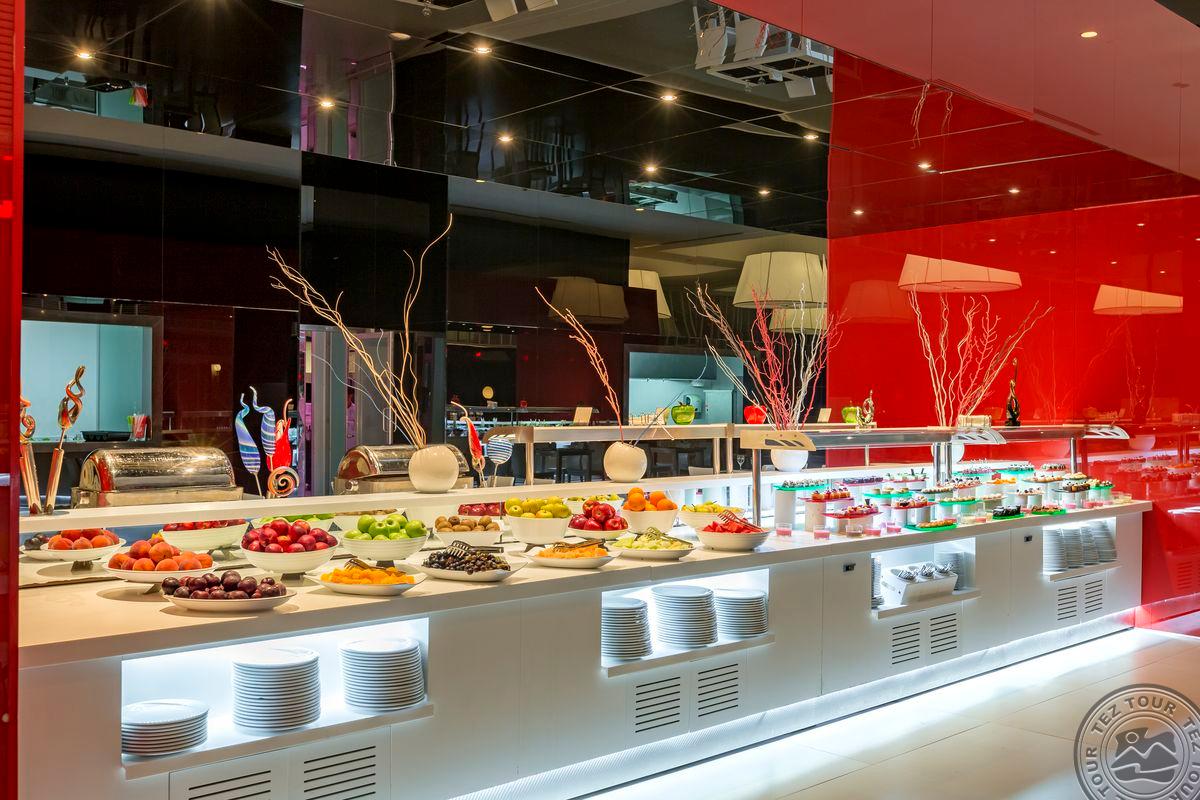 • a la carte restoranai: 7 (turkiškas, žuvies, italų - rezervacijos mokestis; tarptautinis, sušio, afrodiziako, restoranas Blind (vakarienė tamsoje) - pagal išankstinę rezervaciją, už papildomą mokestį, pagal meniu, dirba pakaitomis)