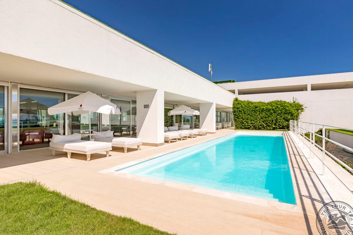 34 dviejų aukštų trijų kambarių Eve Villa tipo vilos (svetainė su minkštų baldų kampu, 2 miegamieji, sauna, 2 garinės dušo kabinos, sūkurinė vonia, terasa su baseinu, maks. 4 asm., 200 m2).