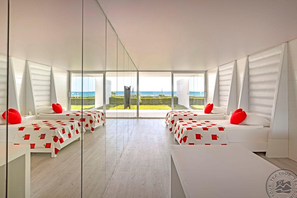 16 dviejų kambarių design suite tipo numerių (2 miegamieji atskirti durimis, 2 vonios kambariai, maks. 3 asm., 120 m2).