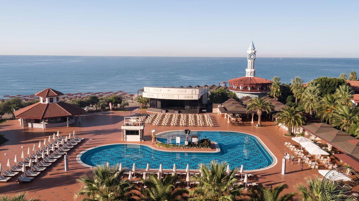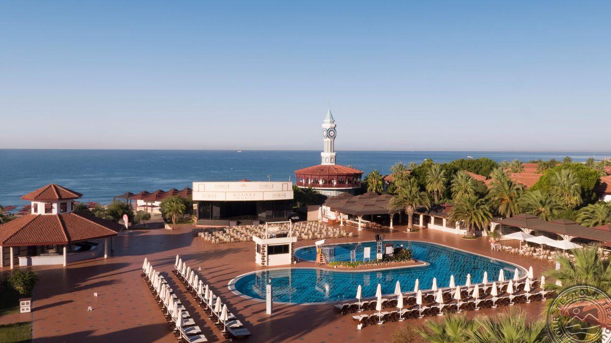 ALI BEY CLUB ir PARK - dvi veidrodinės vieno viešbučio dalys. Įvairi maitinimo sistema. Rekomenduojamas aktyviam šeimyniniam poilsiui su vaikais. Viešbutis turi didelį, 800 m ilgio paplūdimį, vandens parką ir vieną didžiausių Europoje teniso kortų.