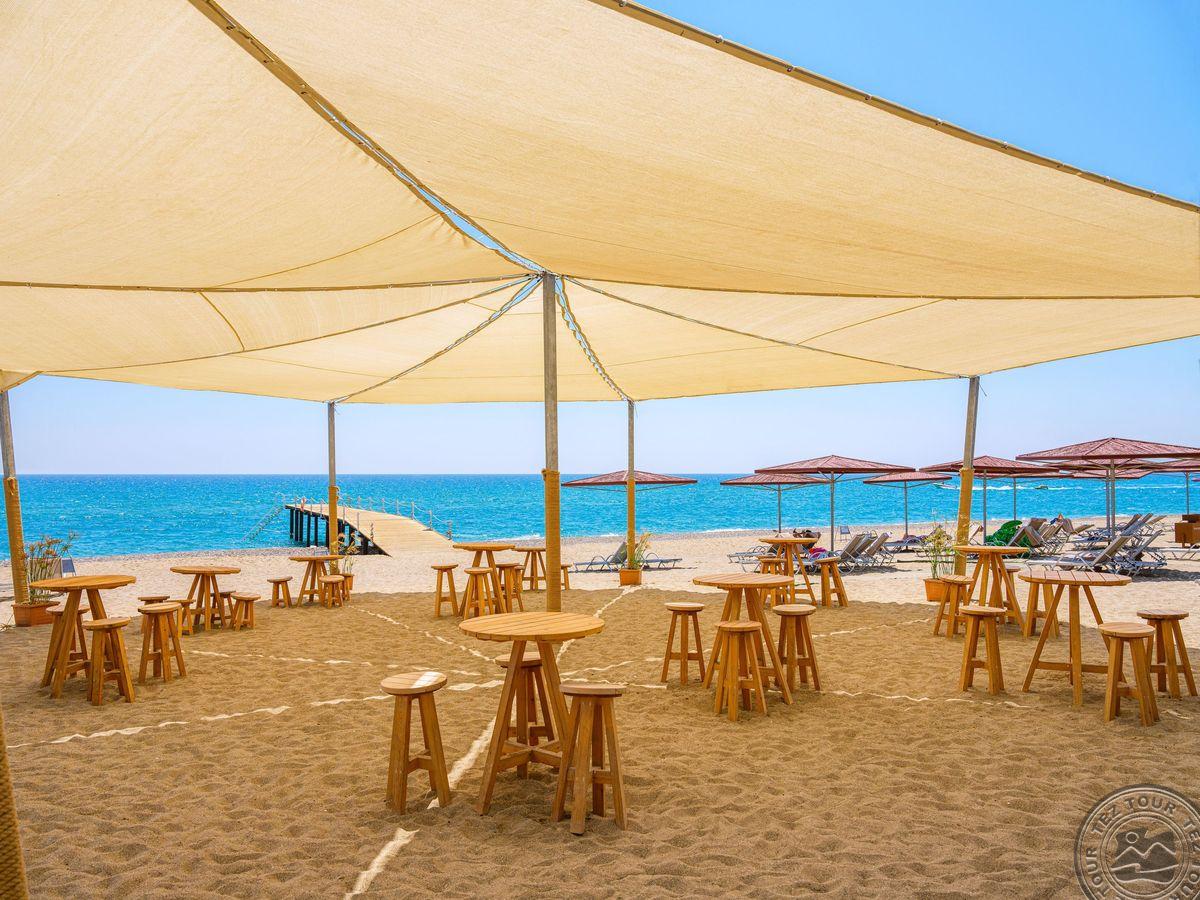• paplūdimyje: skėčiai, gultai nemokamai