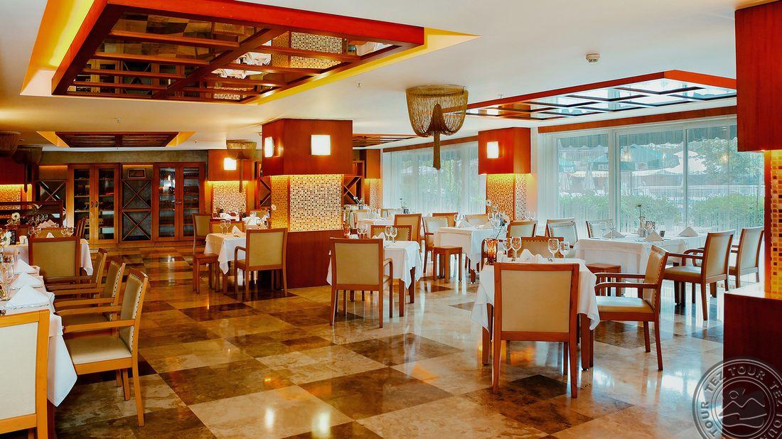 • a la carte restoranai: 5 (itališkas, turkiškas, BBQ, jūros gėrybių, sušio – pagal išankstinę rezervaciją, nemokamai; tarptautinis – už papildomą mokestį)