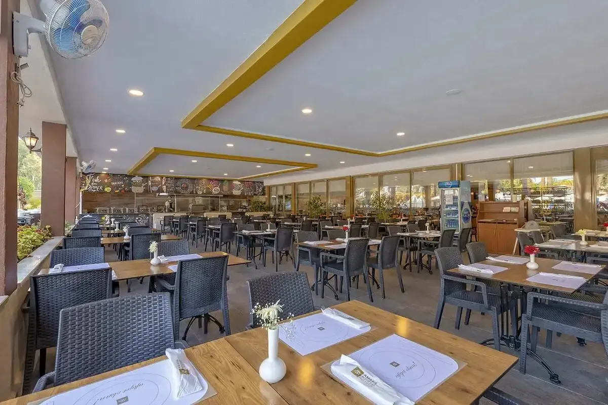 UAI koncepcija. 20 šeimyninių yra garden pastate. Mini bar ir seifas nemokamas, kasdien papildomas. Vežimėliai savaitei apie 15€/sav. Be depozito. 3 A la carte. 1 nemokamas. Jei nori už mokestį, tada 15€/asm. 24/7 dirba baras, kuriame yra importinis alkoholis, bet po 24 val jis mokamas. Restorane galimas atskiras maitinimas pagal poreikius (vaikams, alergijoms, veganams). Uždaras baseinas šildomas. Yra kalnelių vaikams ir suaugusiems. Prie garden yra baras, restoranas, relax pool. Nuo garden pastato veža iki paplūdimio. Atstumas apie 300m. Wifi visoje erdvėje nemokamai. Yra kur išeiti pasivaikščioti. Parduotuvėlės netoli. Pats viešbutis jaukus, prie baseino groja muzika. Nurodė, kad svečiai 50/50 europiečiai ir rusakalbiai. Gyvenantys pagyrė maistą.