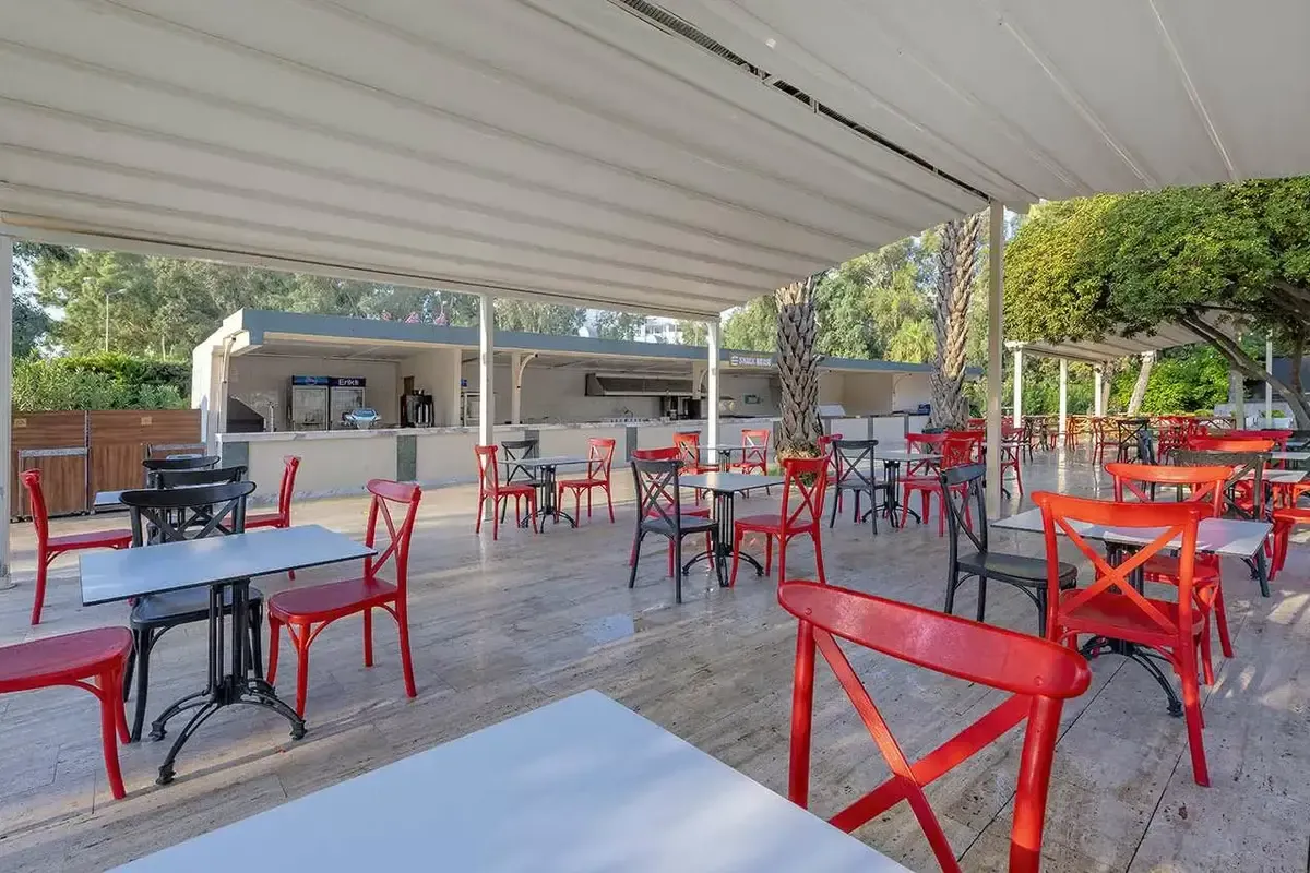 Mini baras pildomas kasdien. Vežimėlis nuo 15 eur savaitę. 3 al carte. 1 kartą galima, antras kartas 15 eur/asm. Importiniai gėrimai iki 12 valandos nemokamai, po 12 ekstra. Wifi visoje teritorijoje, paplūdimyje taip pat yra. Yra viskas pritaikyta kūdikiams, buteliukų šildytuvai. Pritaikyta dietinė mityba. Šildomas baseinas vidinis. Garden teritorije baras, restoranas ir relax baseinas. Iki jūros 300 m.