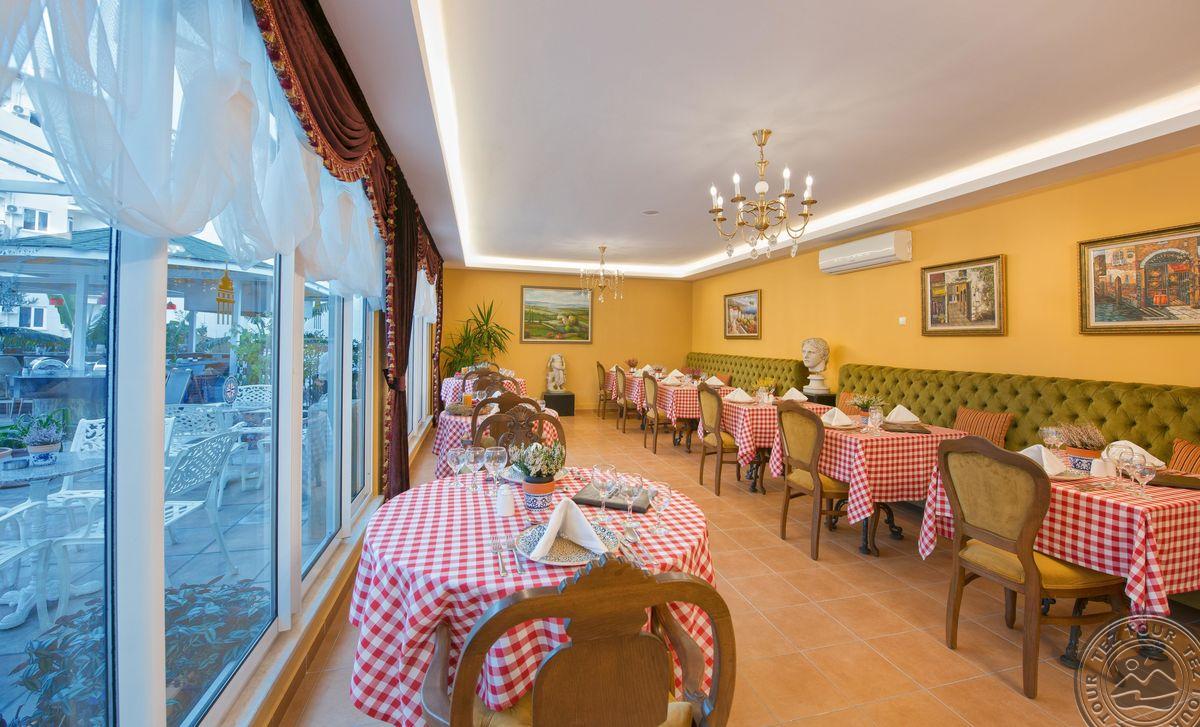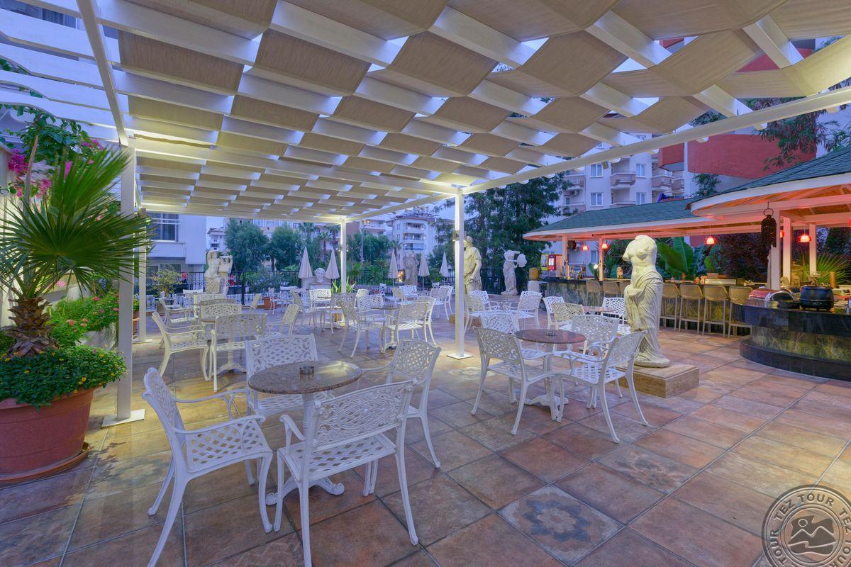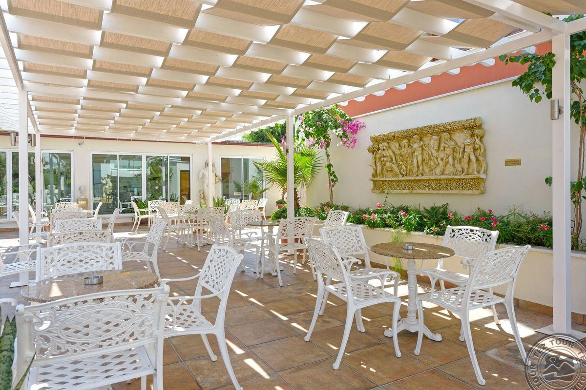 Puikus aptarnavimas, jokių rūpesčių kelionėje ANTIQUE ROMAN PALACE MUSEUM HOTEL 5* ultra viskas įskaičiuota. Viešbutis neatitinka tokio įvertinimo: lokacija, miesto tipo viešbučių rajone, per kelią nuo jūros, 30-40 min pėsčiomis iki Alanijos centro, autobusu 15 min,. Su švara viskas gerai. Teritorijos, jei neskaičiuoti baseino, nėra. Vienas baras viešbutyje, kitas pliaže, dar vienas yra, bet neveikia. Klubas yra, bet neveikia taip pat. Restoranas turi terasą ant stogo, su gražia miesto ir kalnų panorama, tačiau maisto pasirinkimas mažas, patiekalai kartojasi, A la carte restorano nėra. Alkoholiniai gėrimai nemokamai tik vietiniai, pliažo bare tik vietinis alus + gaivieji gėrimai ir kava. Kambariai minimalistinio dydžio, tvarkingi, nenudrenkti, lovos patogios, antikinio stiliaus interjeras. Personalas malonus, bet ne uolus, angliškai kalba tik registratūros darbuotojai. Savininkai pinigus investuoja tik į antikinį meną, kurių pilna viešbučio viduje ir teritorijoje. Vertimas 4*