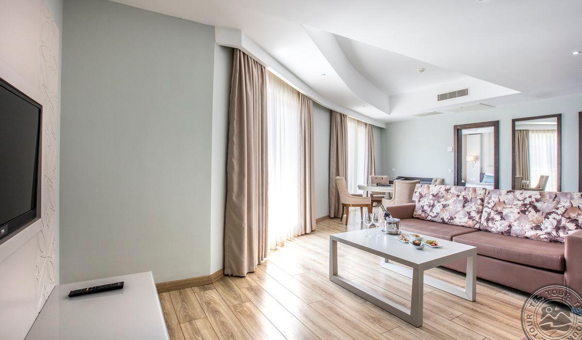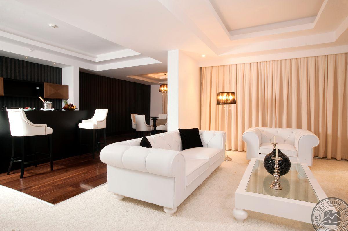 208 dviejų kambarių club suite room tipo numeriai (svetainė, miegamasis atskirtas durimis, maks. 2 asm., 48 m2).