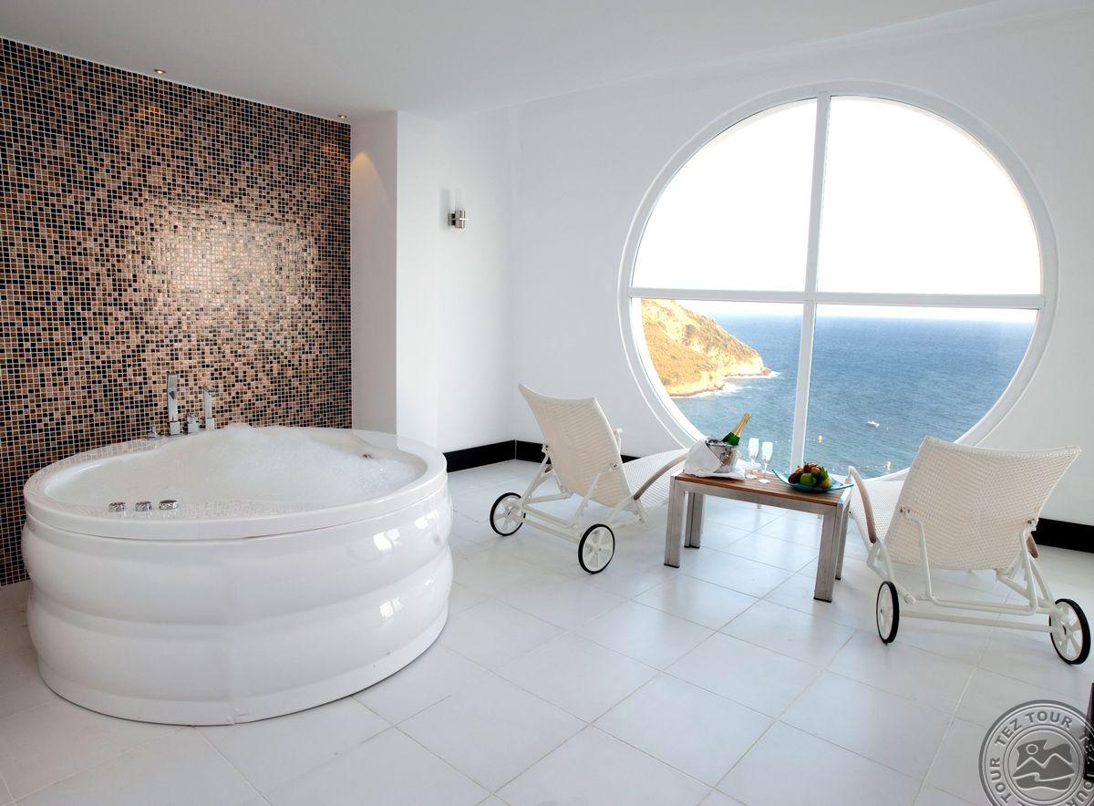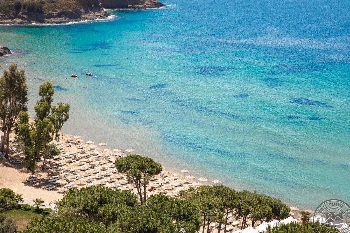 Iki viešbučio 3 val nuo oro uosto. Labai graži vieta: ant kalno, skaidri, beveik atvira jūra ir geras platus paplūdimys, apačioje matosi šiek tiek kalnų. Yra only adults paplūdimys. Minimalistinis stilius. Kambariai šviesūs, gražūs. Geras maitinimas. Anksčiau buvo ekonominis, dabar parenovuotas. Yra boulingas. Teritorija keliais aukštais, bet neypatinga ir galėtų būti geriau prižiūrėta. Namukai viduj tokie pat, iš išorės graikiško stiliaus. Visai jauku.