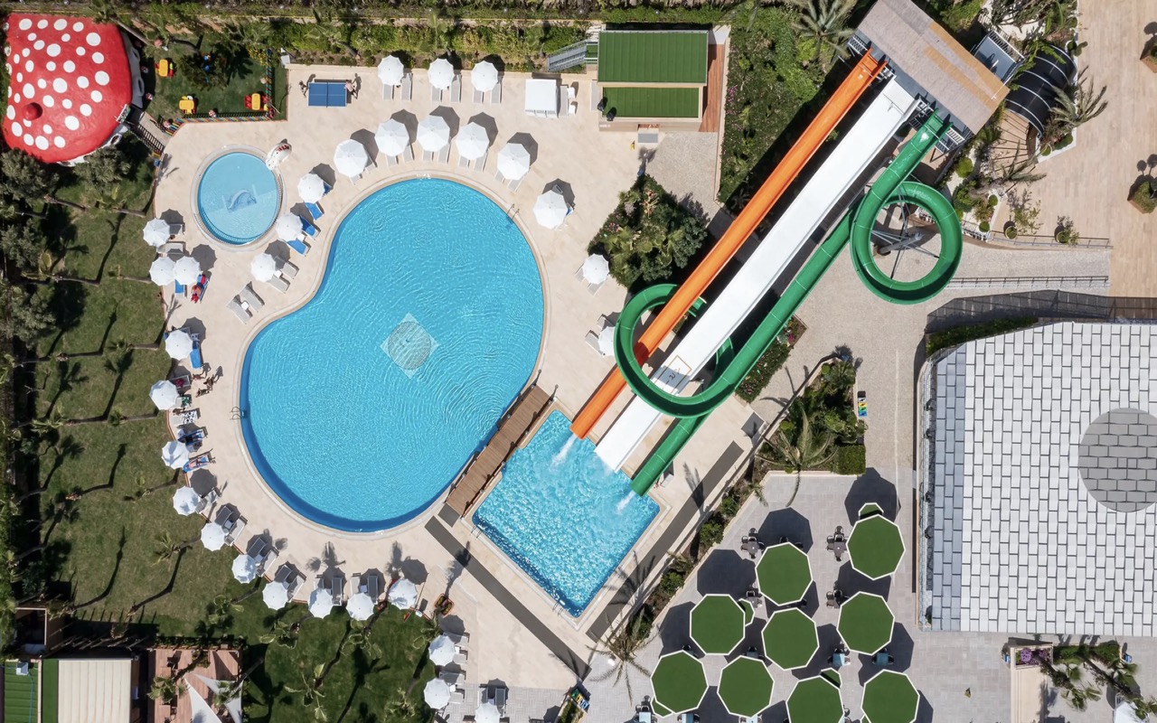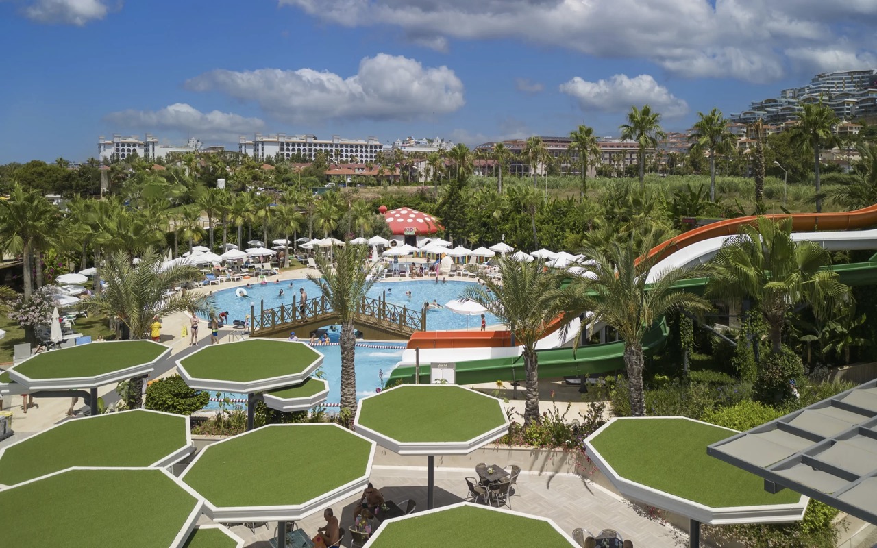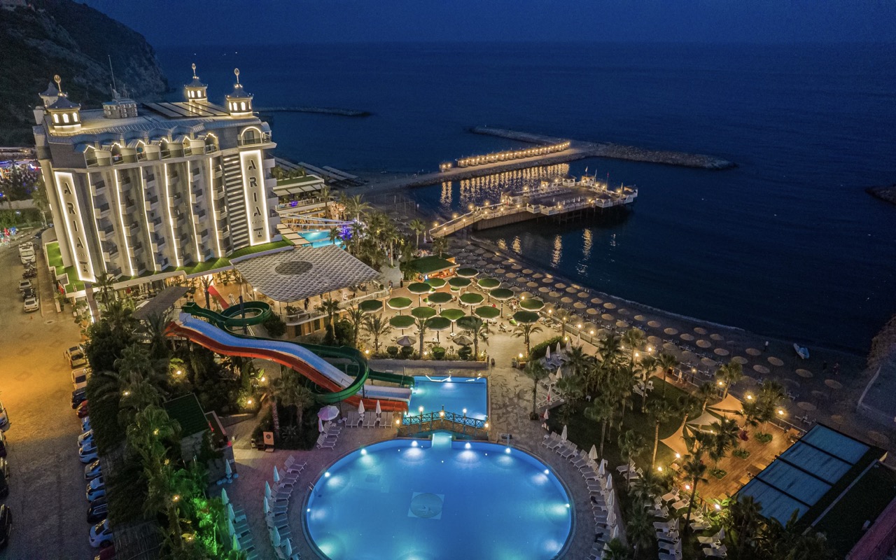 The hotel is located in the city of Konakli in the Alanya region, on the first coastline and consists of two buildings, which are located across the road from each other. The territory has outdoor pools for adults and children, water slides, several restaurants and bars. The hotel has a spa center and a gym. Also among the entertainment guests are offered billiards, table tennis, water sports, and animation entertainment programs. There is a mini club for children. The hotel is ideal for family and active recreation.