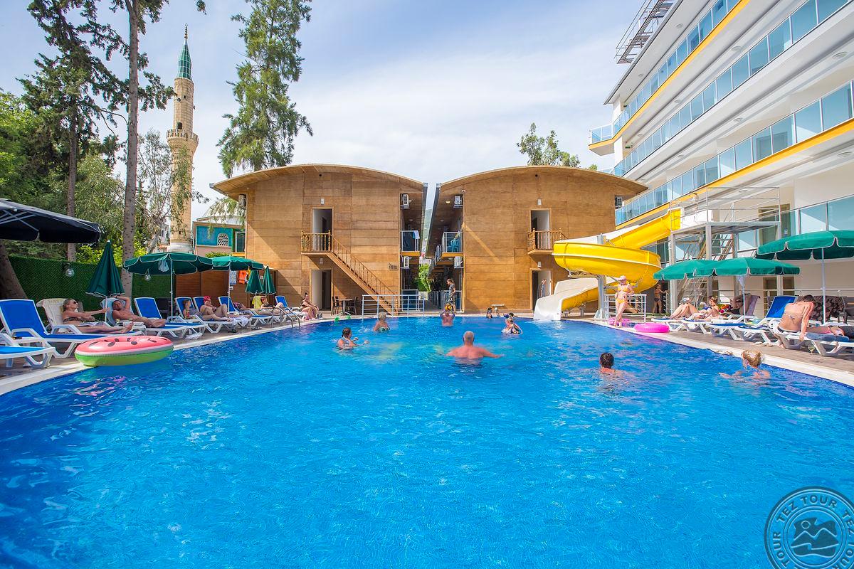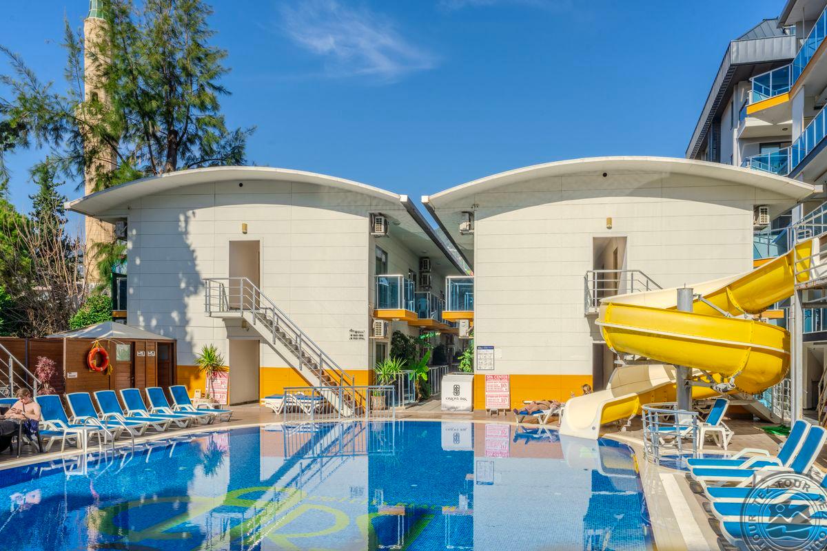 Apie 130 km iki Antalijos oro uosto, apie 1,5 km iki Alanijos miesto, apie 80 m iki nuosavo paplūdimio (per kelią).