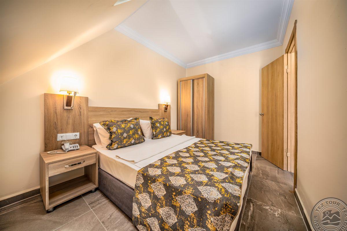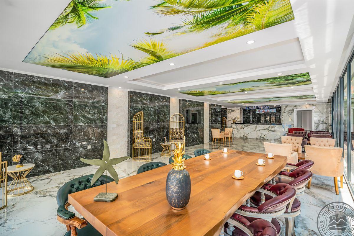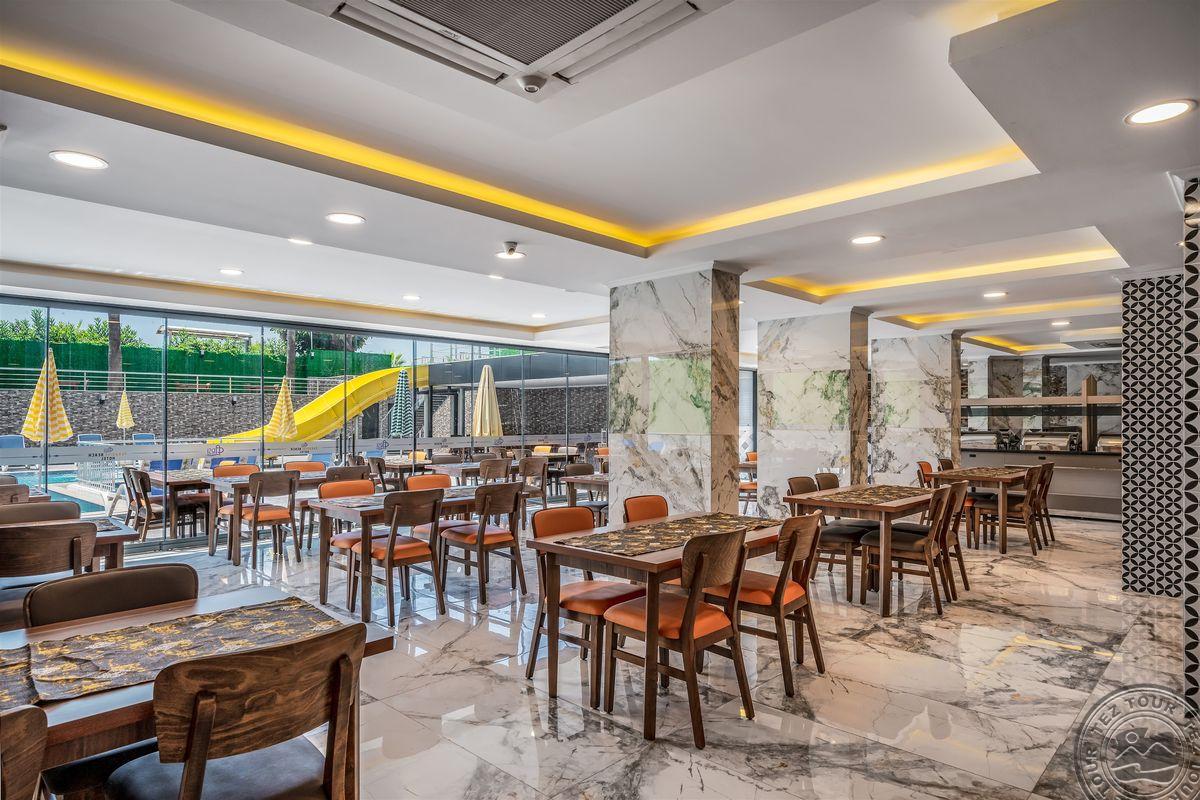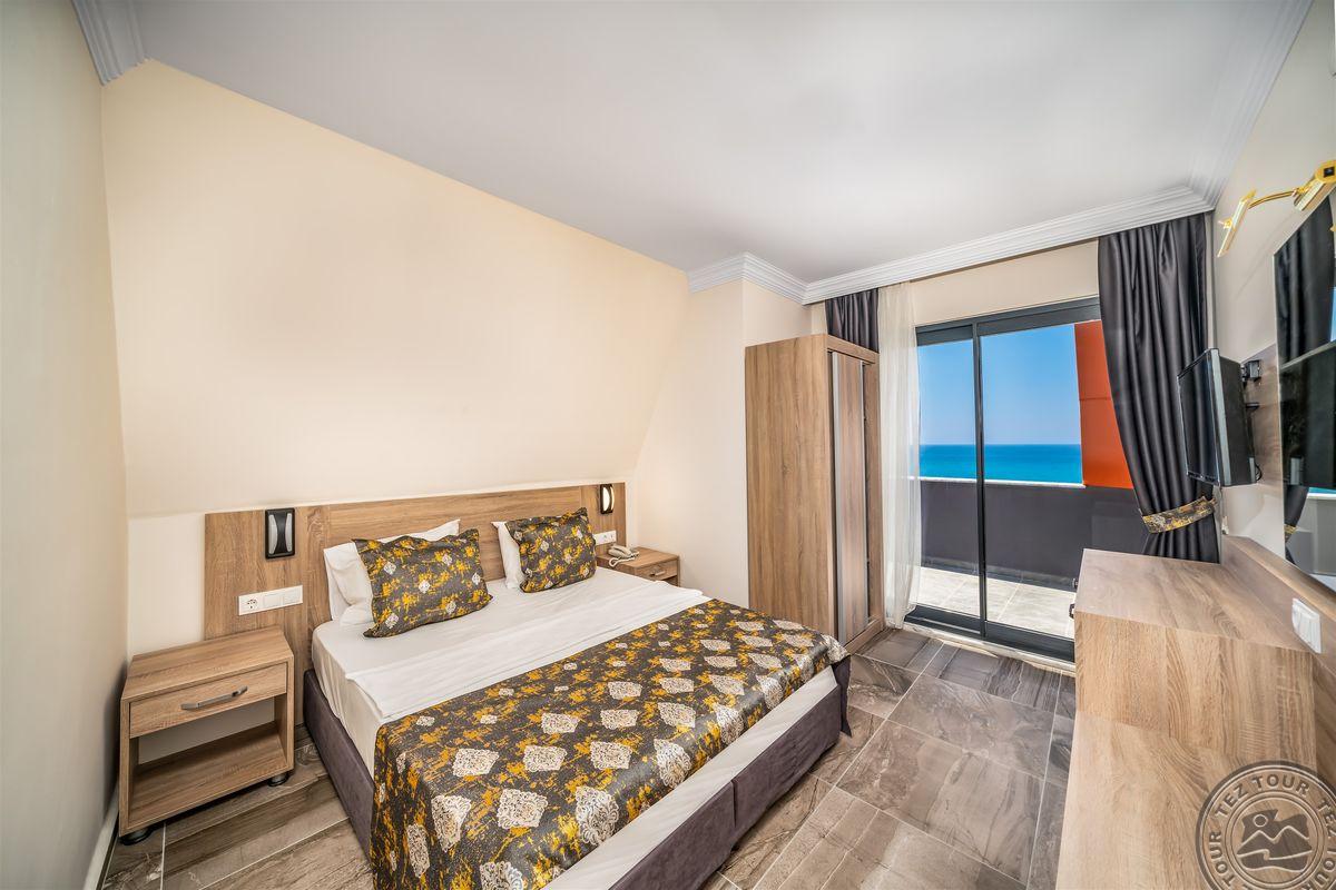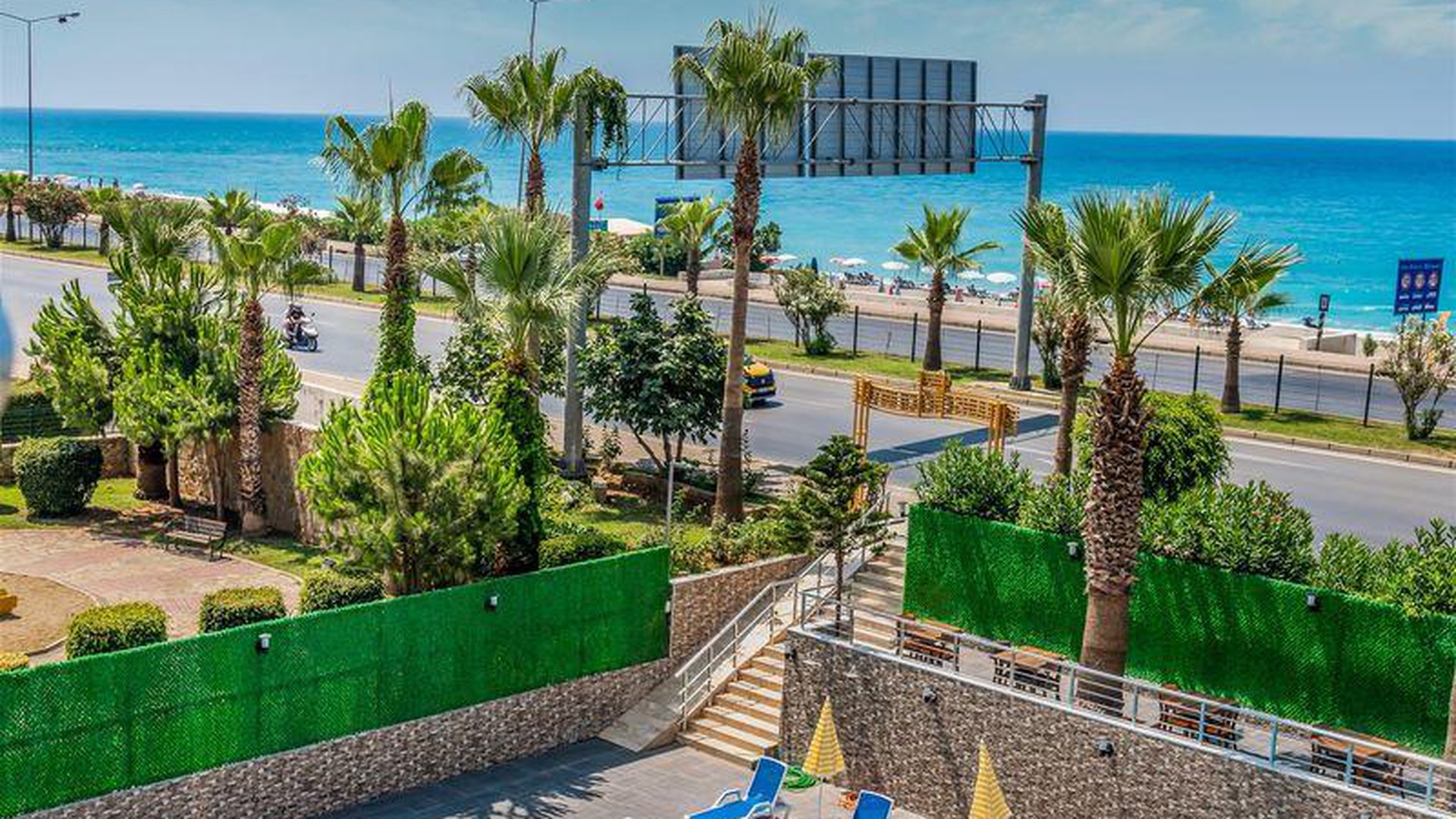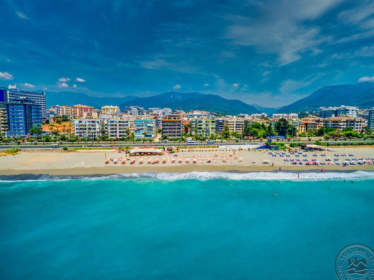 Apie 130 km iki Antalijos miesto oro uosto, apie 4,5 km iki Alanijos miesto centro, apie 50 m iki nuosavo paplūdimio.