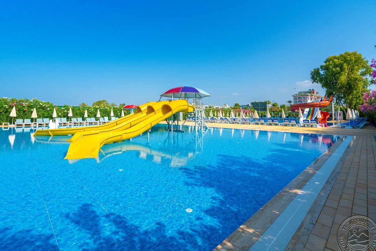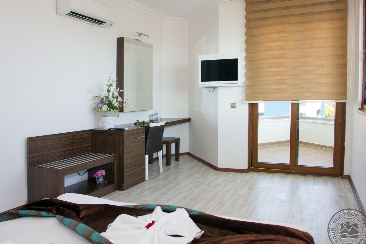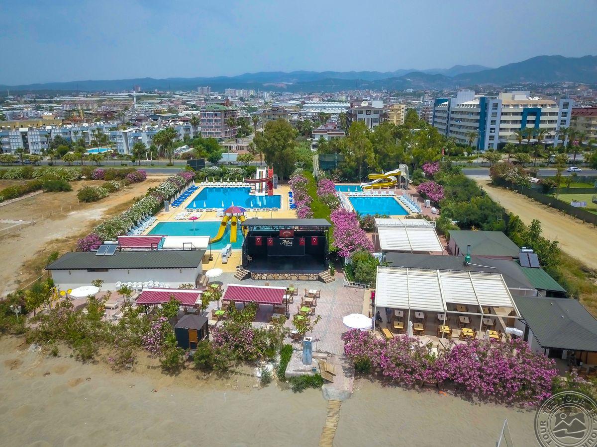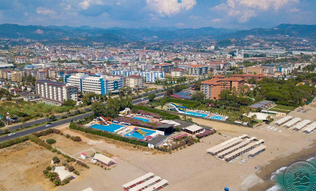 Apie 110 km iki Antalijos oro uosto, apie 12 km iki Alanijos centro, Konaklio gyvenvietėje, apie 50 m per kelią iki nuosavo paplūdimio (yra požeminė perėja).