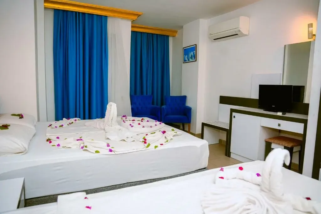 Smėlėtame Kleopatros paplūdimyje įsikūrusiame viešbutyje „Azak Beach Hotel“ yra lauko baseinas, sauna ir turkiška pirtis, o numeriuose - oro kondicionieriai ir balkonai, iš kurių atsiveria nuostabūs Viduržemio jūros vaizdai. Patogiuose ir šviesiuose „Azak Beach Hotel“ numeriuose rasite svetainių erdves, televizorius, mini barus bei galėsite naudotis nemokamu belaidžiu internetu. Viešbutis įsikūręs Alanijos centre, tad lengvai pasieksite daugybę restoranų, barų ir parduotuvių. Rekomenduojamas poroms.