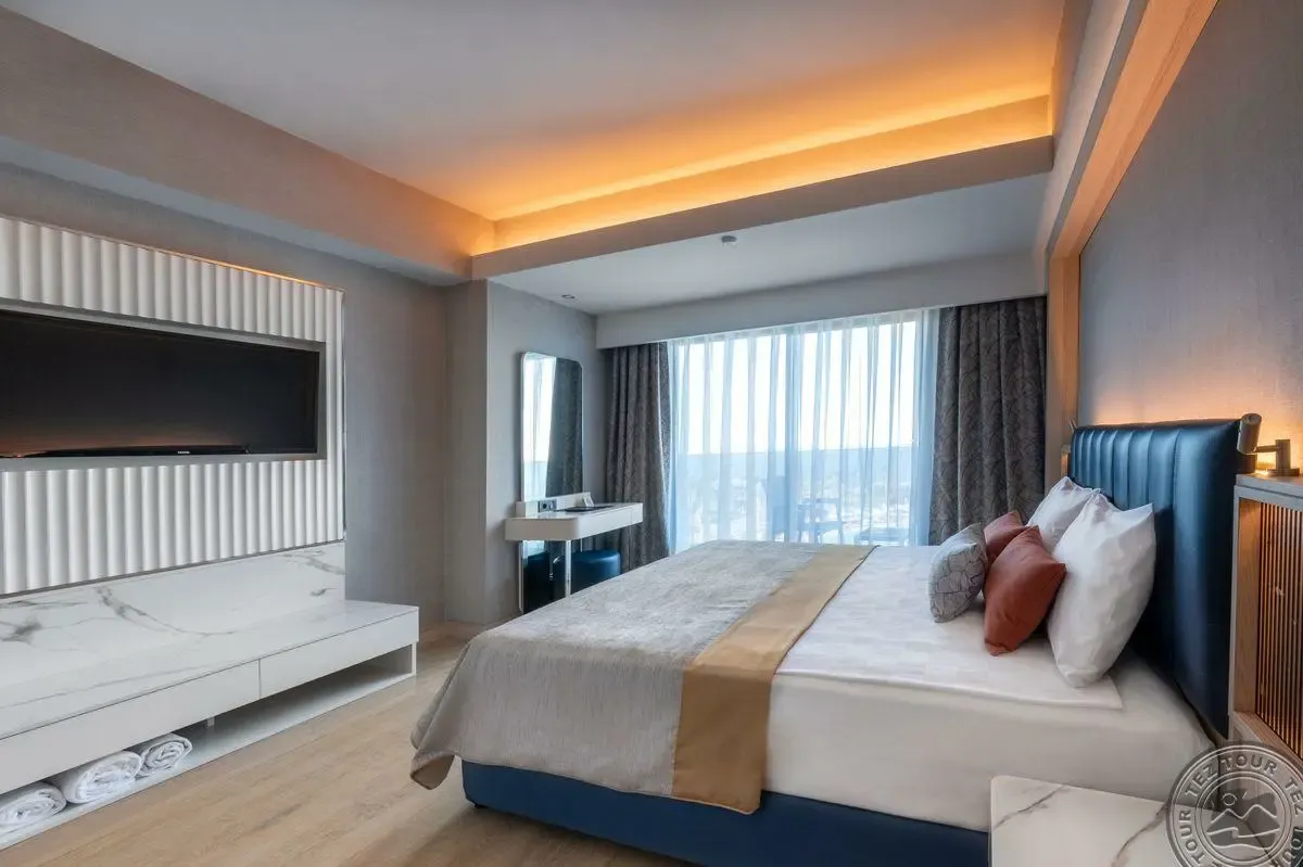 Naujas viešbutis suteiks Jums malonią atostogų patirtį. Interjeras sukurtas derinant estetiką ir komfortą su akį traukiančiu dizainu. Viešbutis turi privatų paplūdimį. Dėl unikalios viešbučio vietos iš daugumos kambarių atsiveria jūros, baseino ir kai kurių ežerų, upių ir miško vaizdai. Viešbutis siūlo daugybę patogumų ir pramogų Jūsų atostogoms, įskaitant sauną, SPA, treniruoklių centrą, vyrų ir moterų kirpyklas, butiką, juvelyrinių dirbinių parduotuvę, fotografų studiją, žaidimų centrą ir prekybos centrą. Rekomenduojame šeimoms ir poroms.
