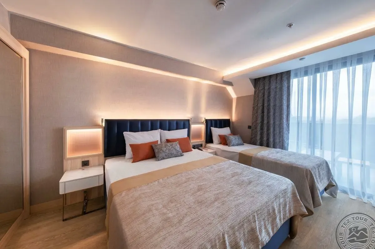 Gražus, ramus viešbutis. Aktyvus, su Dj pasirodymais ir diskotekomis viešbutis. Maisto pasirinkimas ir įvairovė yra, gėrimai normalūs. Labai gražus Maldyvų stiliumi įrengtas baseinas, pati baseino zona labai graži, didelis akvaparkas. Teritorija tokia - viename lygmenyje viskas. Patys paprasčiausi kambariai persivadino į Tiny Attic (vietoje Loft, tai laiptai į viršų, kambarys taip pat, kaip antrame aukšte), nedideli, bet kas nori sutaupyti tinkami, telpa iki 2 asmenų. Standard Land View same kaip Tiny Attic tik pirmame aukšte. Superior jau erdvesni, pirmame lygyje. Superior Sea View, erdvus, gražus, balkonas didesnis su stiklu. Family Swim Up gražus. Pietavome. Jeigu pakeistu požiūrį į personalo darbą ir maitinimo kokybę, tai man patiktu labiau nei PALOMA FINESSE. Įsikūręs paplūdimyje (350 m ilgio smėlio ir žvirgždo paplūdimys). Modernaus dizaino kambariai. „Family Swim up“ tipo kambariai įrengti pirmame aukšte, juose galima apgyvendinti ne daugiau kaip 4+1. Šio viešbučio išskirtinumas - 2 baseinai su baltu smėliu, vienas skirtas tik suaugusiesiems, kitas - vaikams (netoli vandens parko). Įvairus maisto pasirinkimas (dietinis meniu ir vaikų švediškas stalas). Aktyvi suaugusiųjų ir vaikų animacija. Profesionalus jogos mokytojas ir speciali vieta jogos užsiėmimams. Šokių salė ir didelis žaidimų centras (už papildomą mokestį).