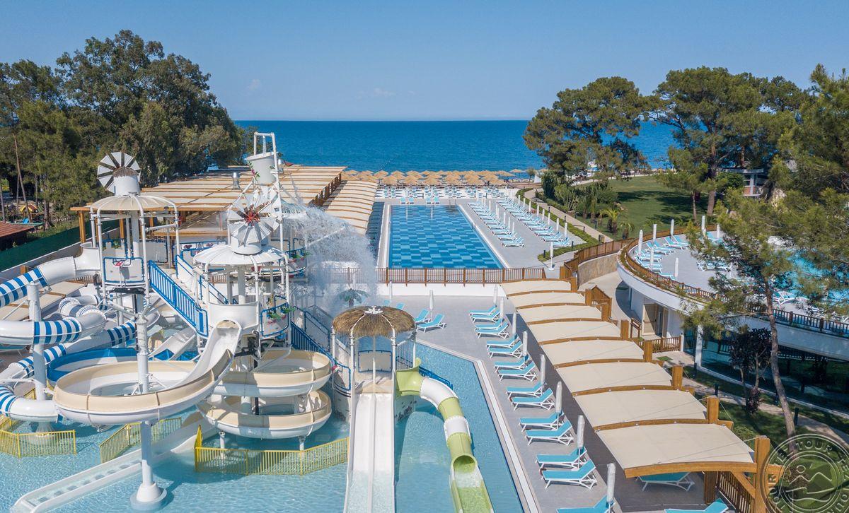 Labai dėkojame už puikias atostogas. Viskas sklandu ir patikima. Agentė pateisino mūsų lūkesčius. Viešbutis tikrai geras, su pervežimais viskas puiku. Drąsiai galite rinktis šį viešbutį. Maistas puikus, lokacija tobula, arti oro uosto. O su vietiniu trsnsportu be problemų galima pasiekti Kemerą. Kadangi mūsų atostogos buvo skirtos pasyviam poilsiui, tad viešbučio SPA malonumais buvo pasinaudota. Kainos tikrai nėra mažos, tačiau ten dirbančios merginos iš Bali puikiai išmano savo darbą, tad masažai buvo tobuli. Didelis pliusas, jog nereikia anksti keltis, jog rastum gultą. Atėjus šiek tiek vėliau visada buvo vietos. Vakaro programos pakankamai neblogos, beveik kiekvieną vakarą grojo gyva muzika, o kadangi mums animacija nėra prioritetas, tad šiuo klausimu neturiu ką pasakyti. Teritorija didelė ir labai žalia, dviaukščiai namukai visi tarp pušų, tad galima cikadų muzikos pasiklausyti. Tačiau yra ir keletas minusų, pirmasis būtų, jog šiek tiek trūksta elementarios tvarkos viešose vietose, su kambariais viskas tvarkoje, o antrasis labai akmenuota jūra, tad avalynė būtina, nes kitu atveju ir koją galima išsisukt, akmenys tokie nemenki. Bendrai paėmus mūsų atostogos buvo puikios.