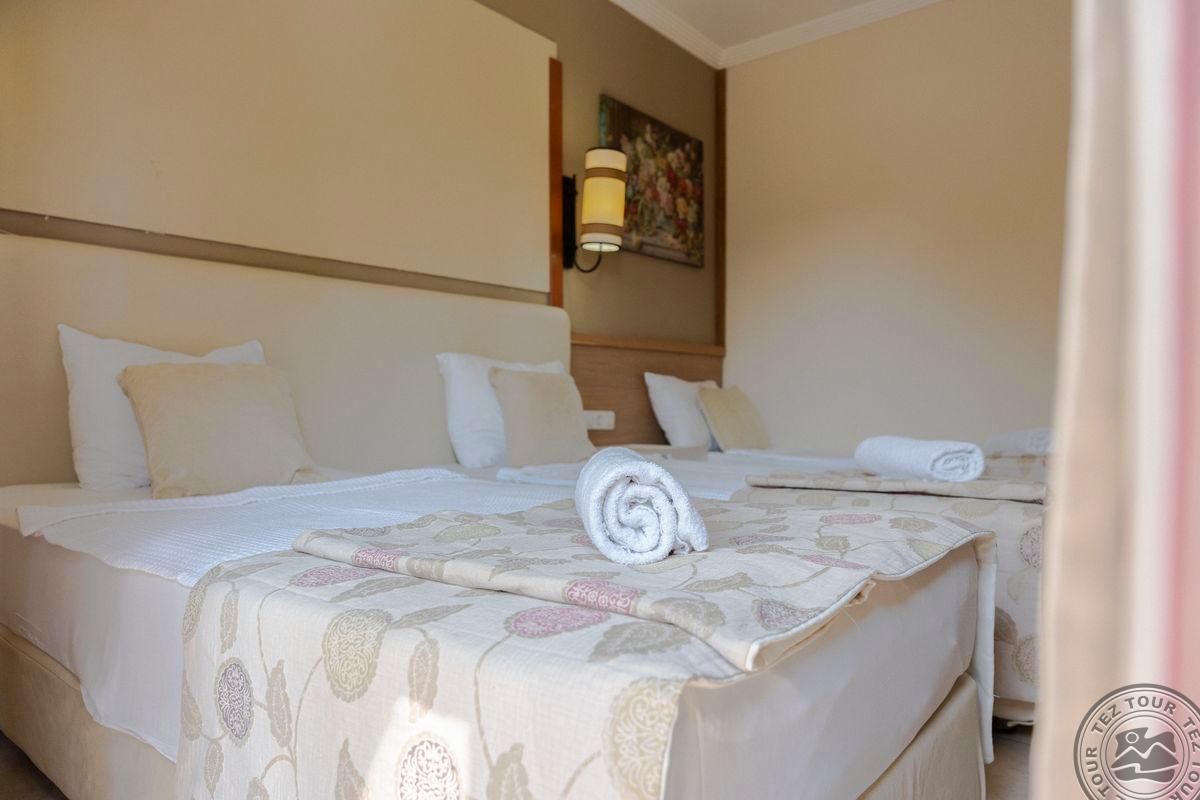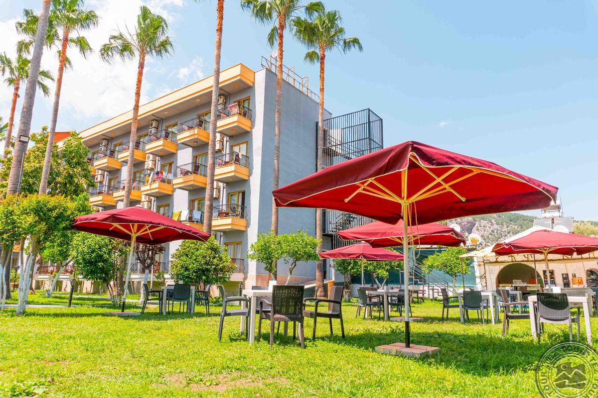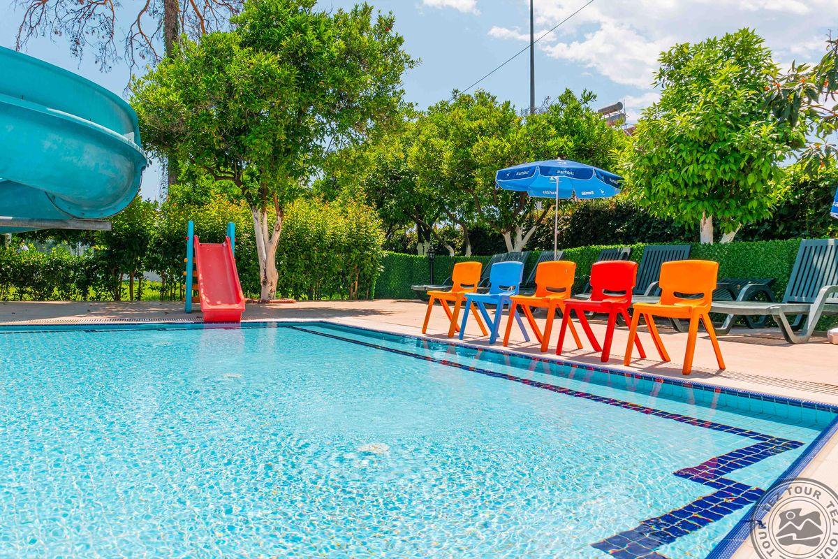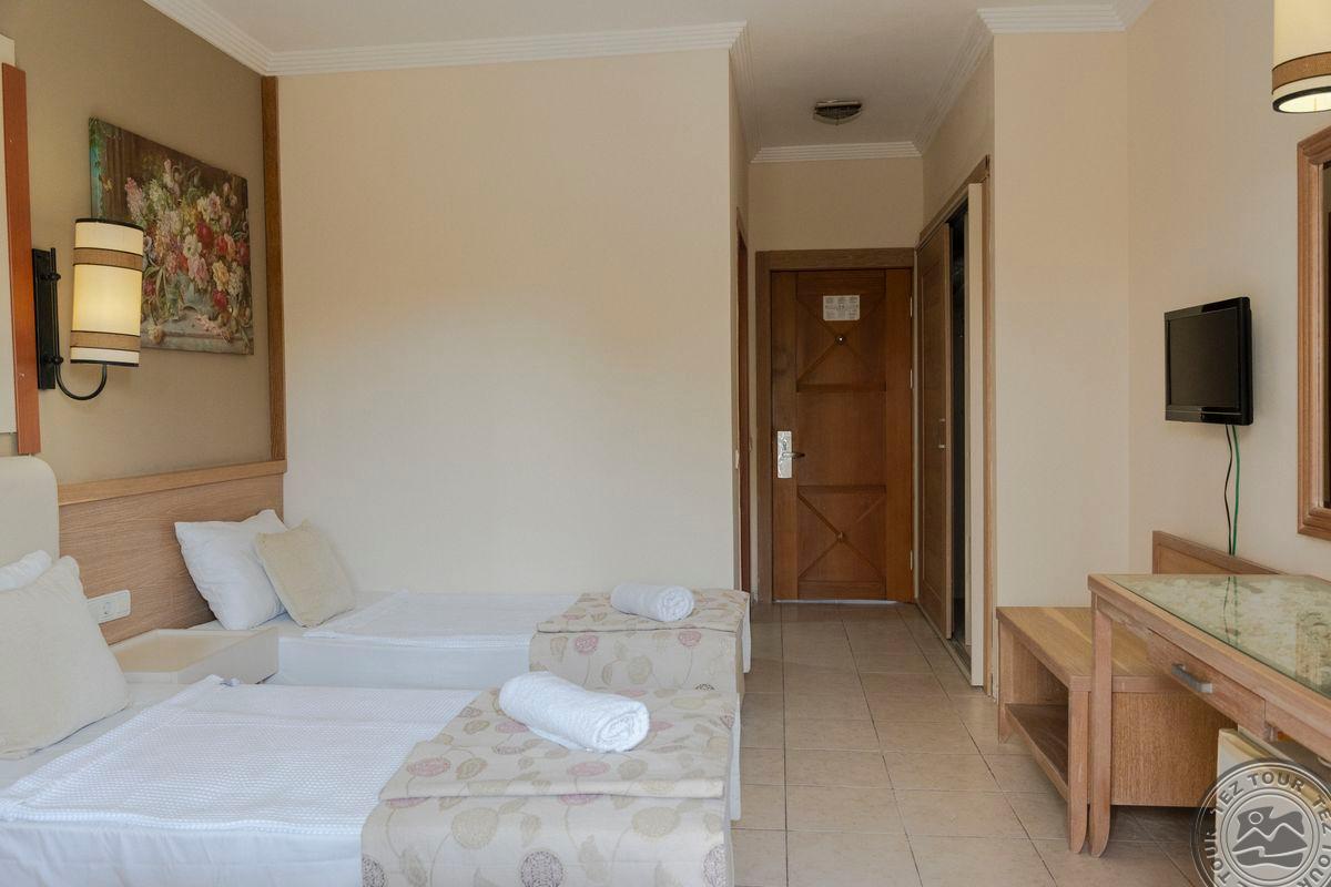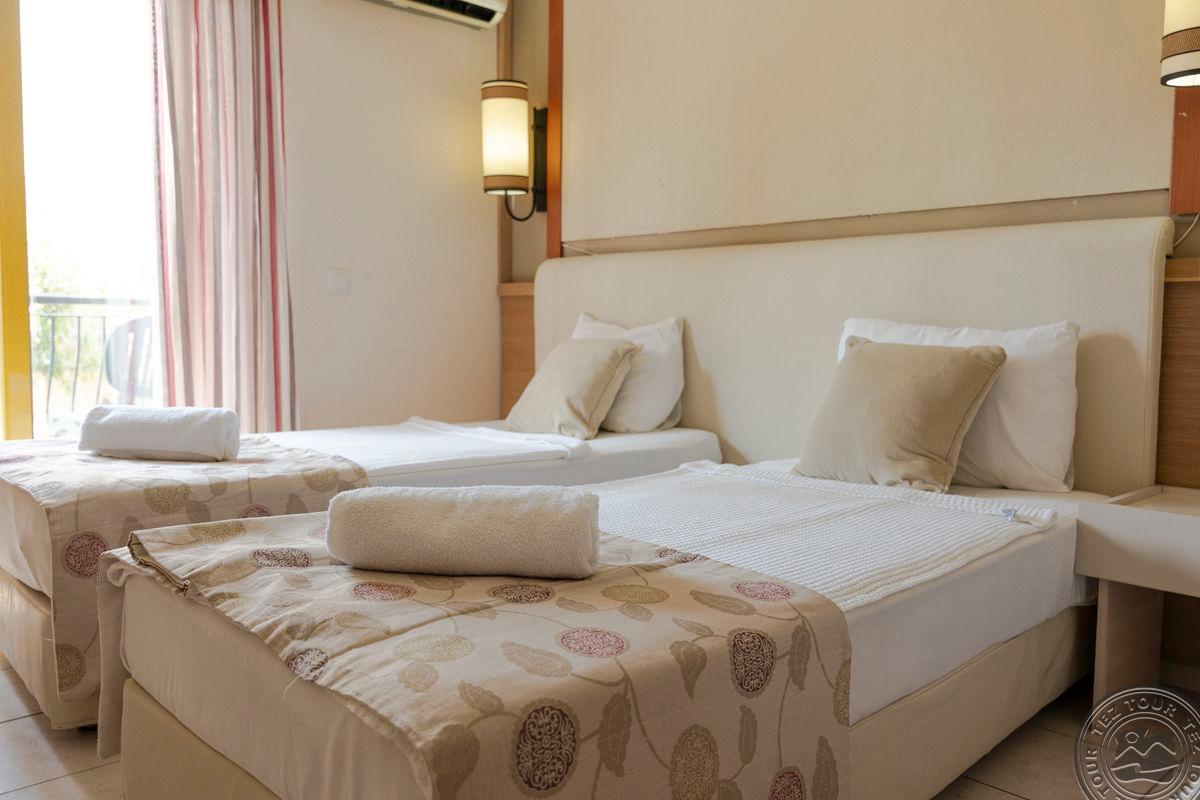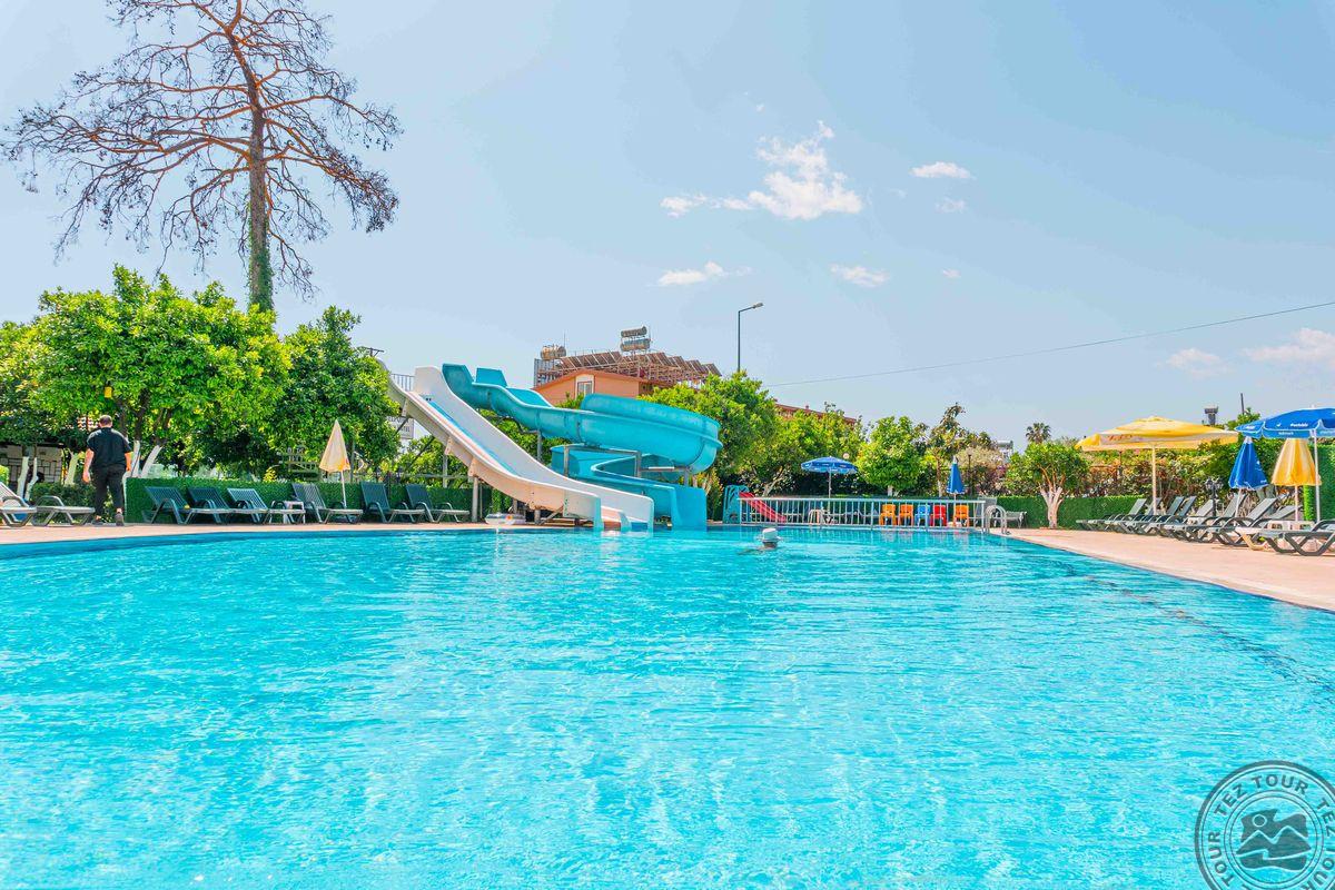 1. Labai nuvylė viešbutis: jam būtinas remontas, maitinimas - labai žemo lygio. 2. Vadybininkas parduoda ir po pardaviminio seviso nelieka. Buvo sąlyga, renkant viešbutį, nemokamas wifi (realybėje mokamas). 3. Rekomenduočiau kitiems tik dėl to, kad galima rasti gerų kainų pasiūlymų. Viešbučiui būtinas remontas, kambariai "nugyventi". Visur trūksta švaros. Kambarius tvarko kas tris dienas arba paprašius. Bet: patogios lovos ir švari patalynė. Restorano maitinimas skurdus, niekas neskuba papildyti ištuštėjusius indus (likus pusvalandžiui iki pusryčių pabaigos pasibaigė pienas sausiems pusryčiams ir nepapildė, jau nekalbant apie vyną vakarienės metu). Labai skanūs gozleme. Liftas neveikė visos kelionės metu ir lagaminus turi pats užsinešti į ketvirtą aukštą. Labai akmenuotas ir netvarkingas viešbučio paplūdimys, įėjimo į jūrą lieptelis sulūžęs. Gražų, jaukų, nedidelį paplūdinį radom už ~1 km Antalijos link. Važiavome 7-ių asmenų kompanija, tai visi bendrom jėgom sugebėjome pasijuokti iš situacijos.