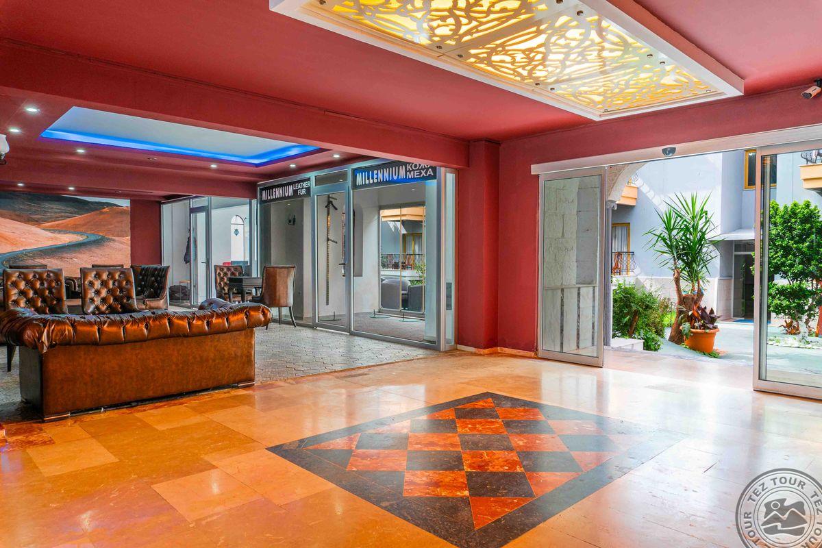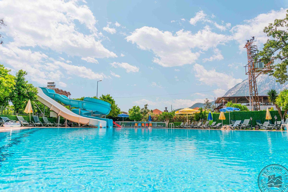 Apie 43 km iki Antalijos miesto oro uosto, apie 15 km iki Kemero miesto, Beldibio gyvenvietėje, apie 100 m iki nuosavo paplūdimio.