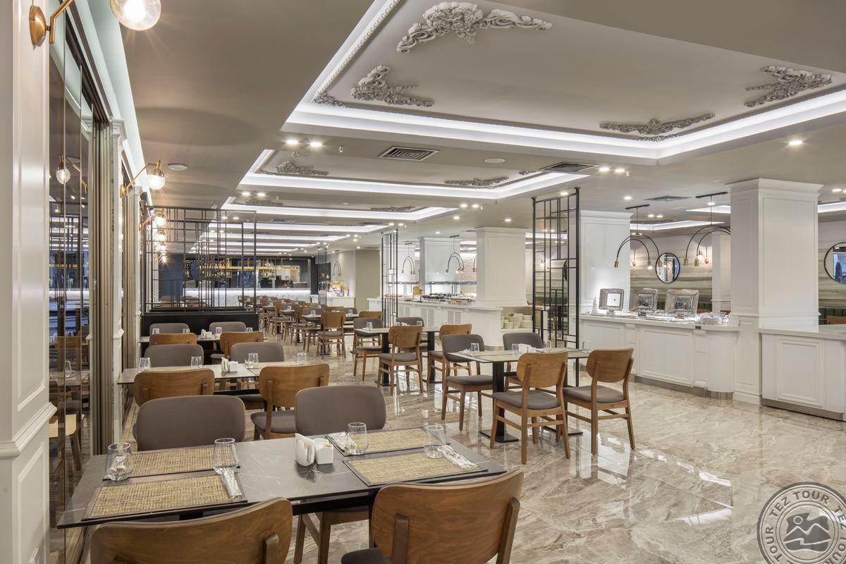 „Blue Marlin Deluxe Spa Resort Hotel“ - Šeimai skirtas viešbutis, Konakli kaime šalia paplūdymio. Atostogų metu, galėsite mėgautis 2 restoranais, pirtimis ir vandens pramogomis.