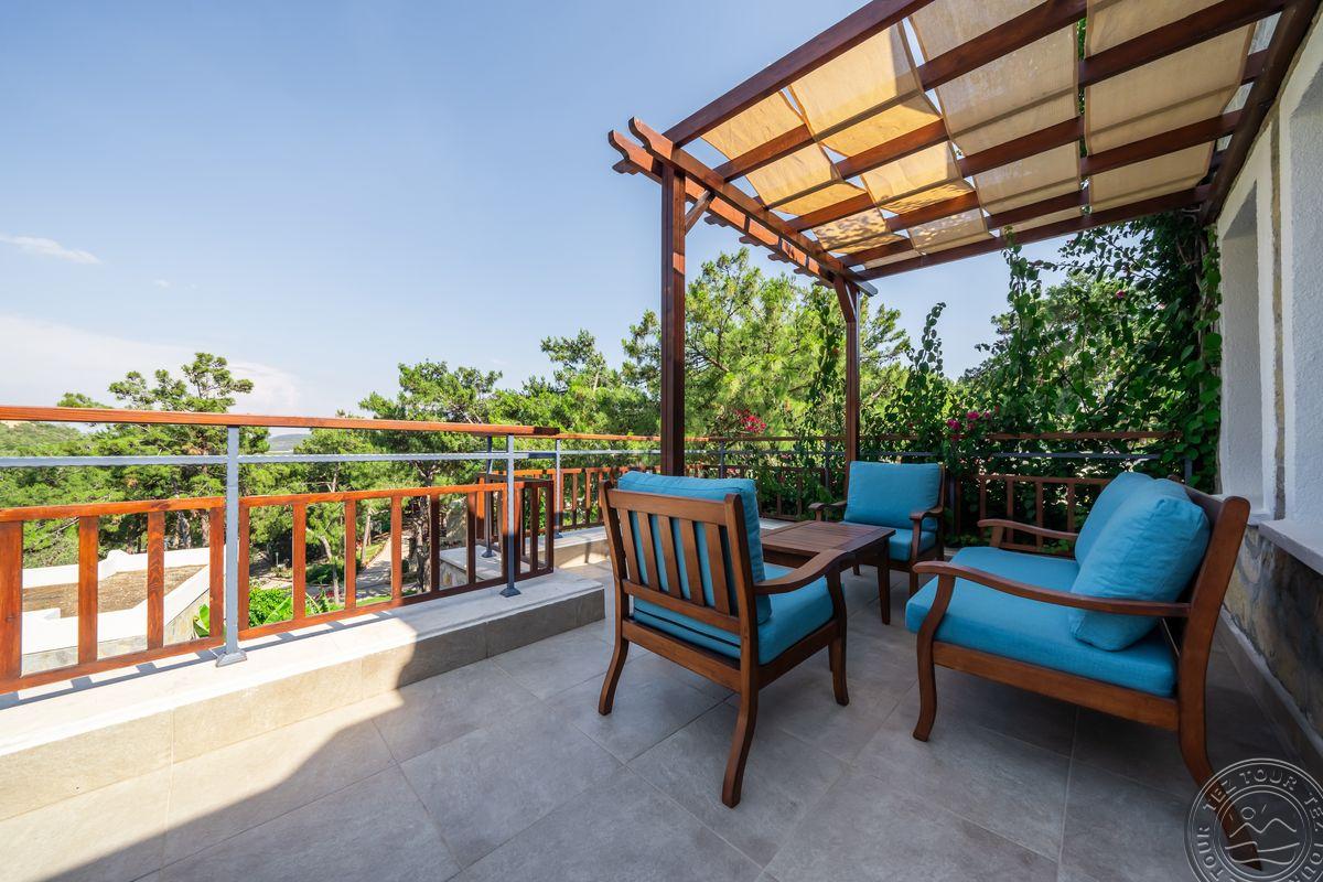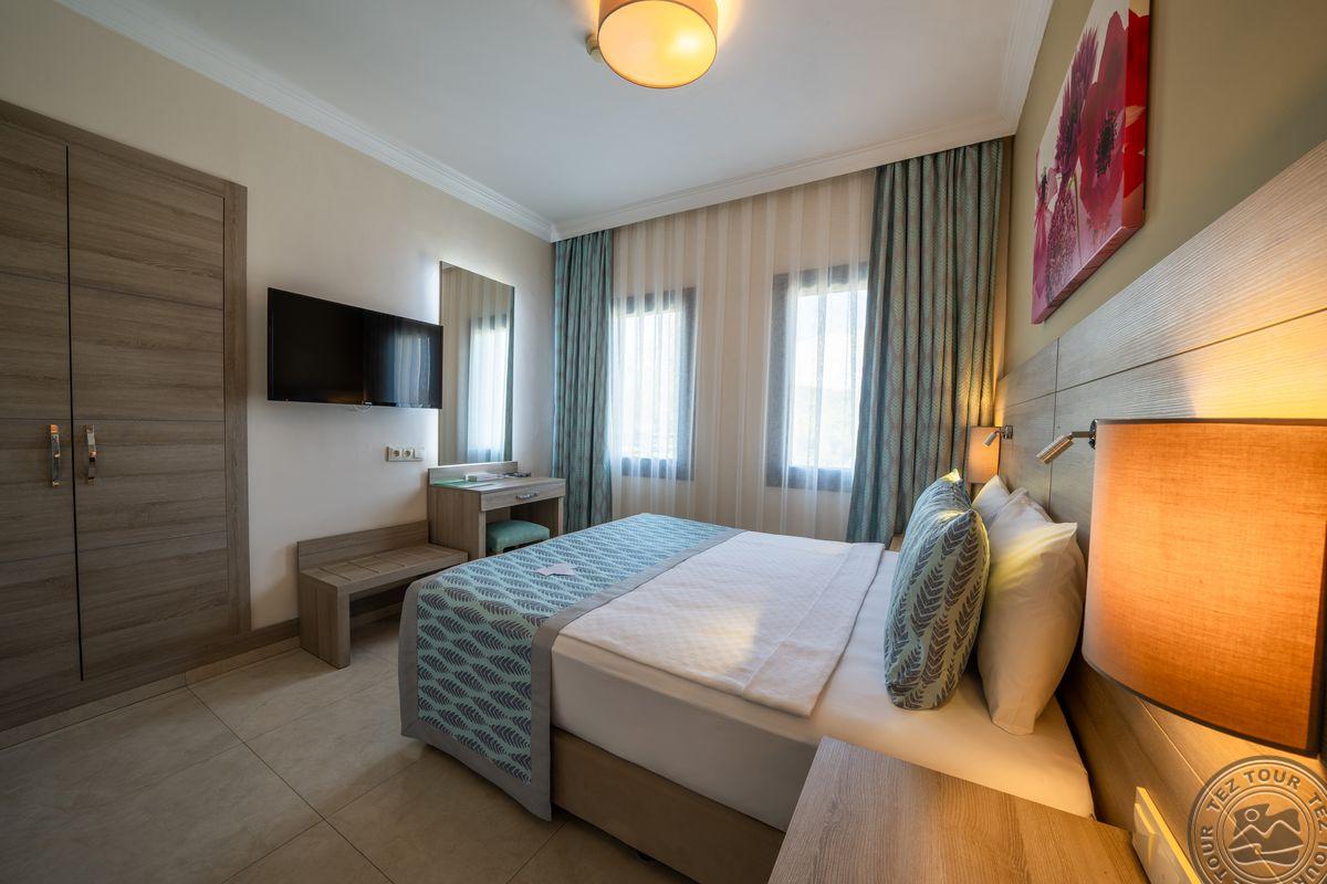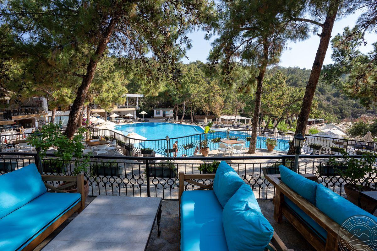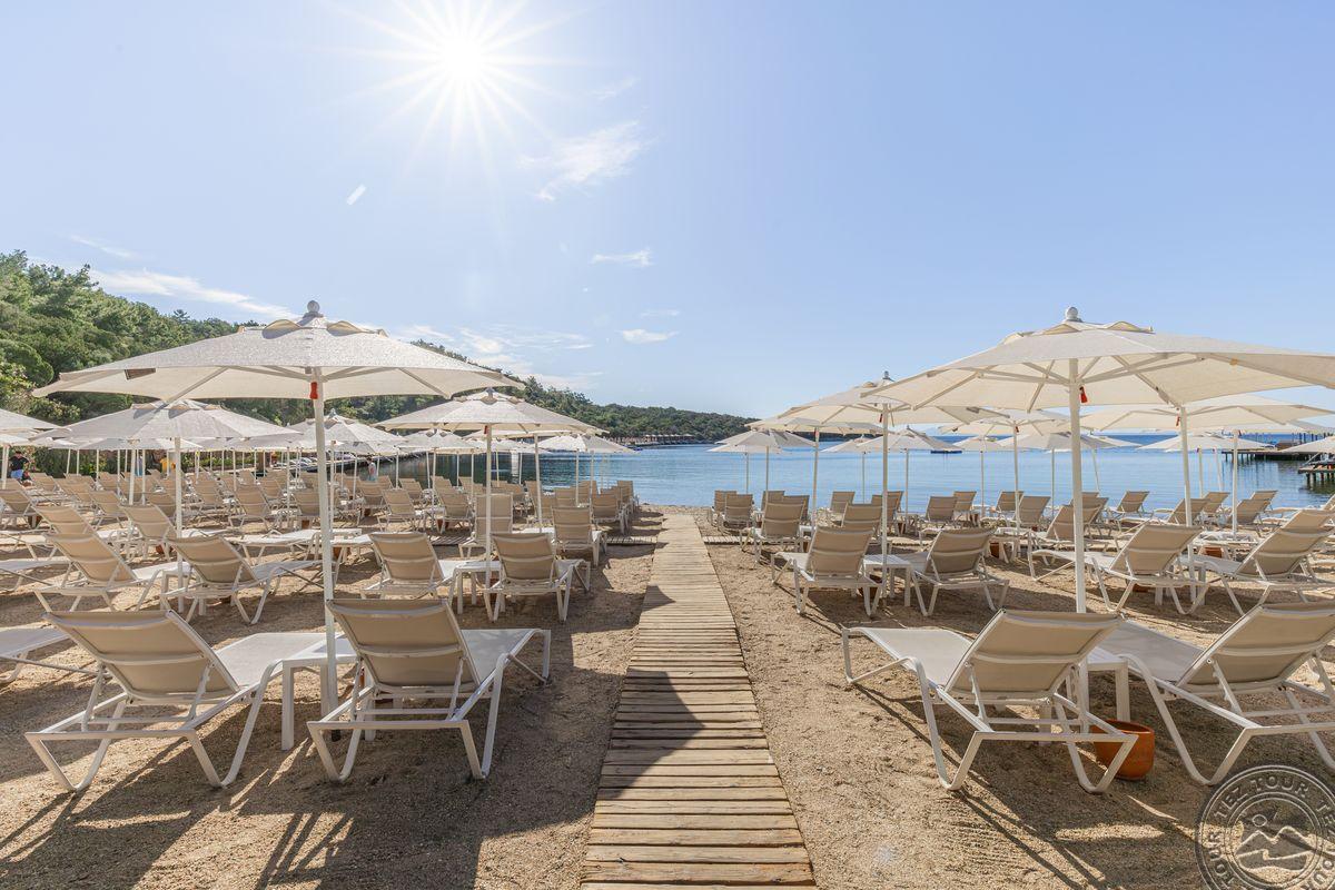 Už viešbučio teritorijos nieko nėra. Palmių apsuptas viešbutis įsikūręs visai prie jūros, o šalia driekiasi nuosavas paplūdimys.Tvarkosi dar tik, kitais metais turėtų būti jaukus ir geras viešbutis. Viešbučio SPA centre įrengta sauna ir turkiška pirtis. Vos per pusvalandį nuo viešbučio nuvyksite iki gyvybingo Bodrumo centro, kuriame gausu naktinių klubų, restoranų ir parduotuvių. teritorija jauki, primena itališko stiliaus gatveles. Turi kalnelius, didelį amfiteatrą, patiko.