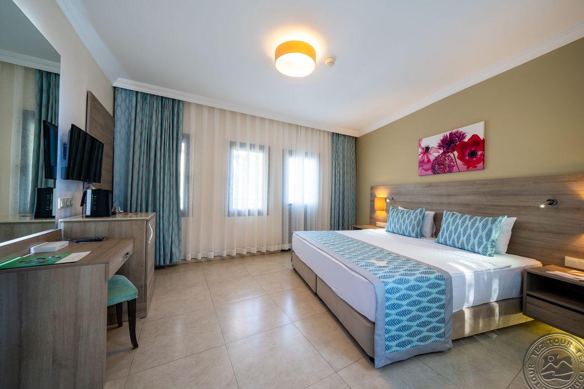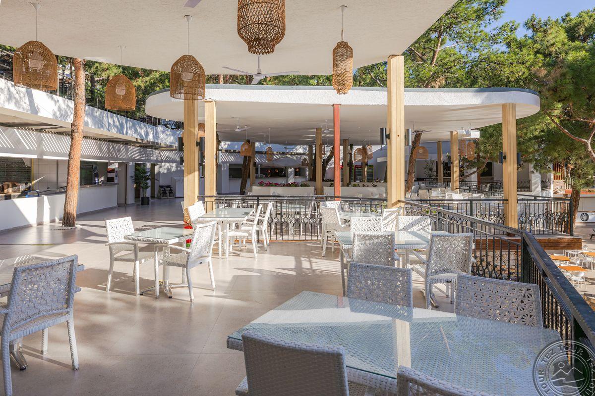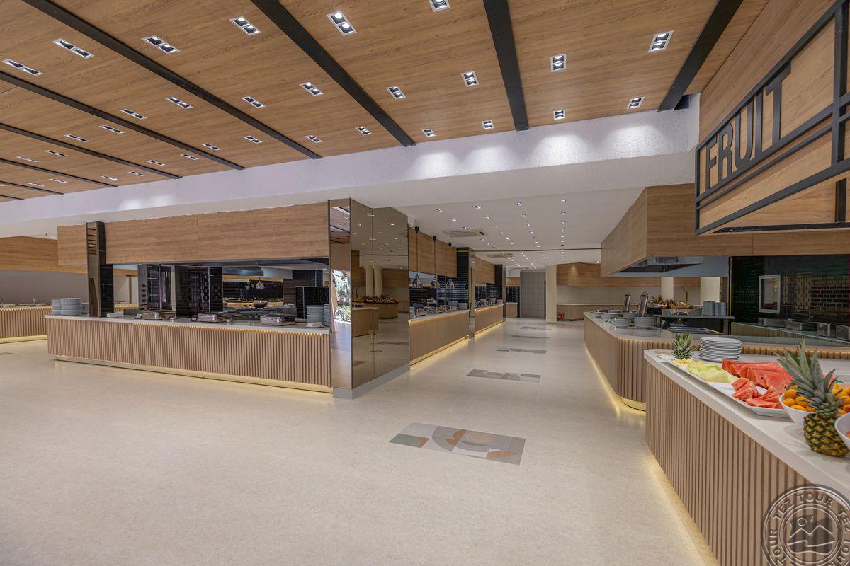 Viešbutis dirba UAI konceptu. Pagrindinis restoranas atrodo geriau nei registratūra. Pagrindinis restoranas ir du a'lacarte - turkų (nemokamas) ir žuvies (mokamas simbolinis 5eur/asm. mokestis). Sezono eigoje planuoja atidaryti dar du a'lacarte tipo restoranus - italų ir meksikiečių. Gana didelis baras fojė, dirba nuo 10 iki 24 val., paplūdimyje ir prie baseinų dirba 20 val. Importiniai gėrimai visur yra įskaičiuoti. Kambarių neparodė nes visi užimti buvo. Viešbutyje viso penki skirtingi kambarių tipai. Seifas kambaryje mokamas 5 eur/d. Kambariai pagrindiniame pastate renovuoti prieš trejus metus, club kambariai prieš vienerius metus. Wifi veikia paplūdimio baruose, bendrose erdvėse, bet neveikia kambariuose (bet išėjus į balkoną veikia). Club kambariuose gyventi geriau nes arčiau paplūdimio ir baseino ir vandens parko. Teritorija didelė, labai stati ir kalvota. Teritorijoje važinėja bagiai, bet kai didelis užimtumas gali tekti laukti labai ilgai.
