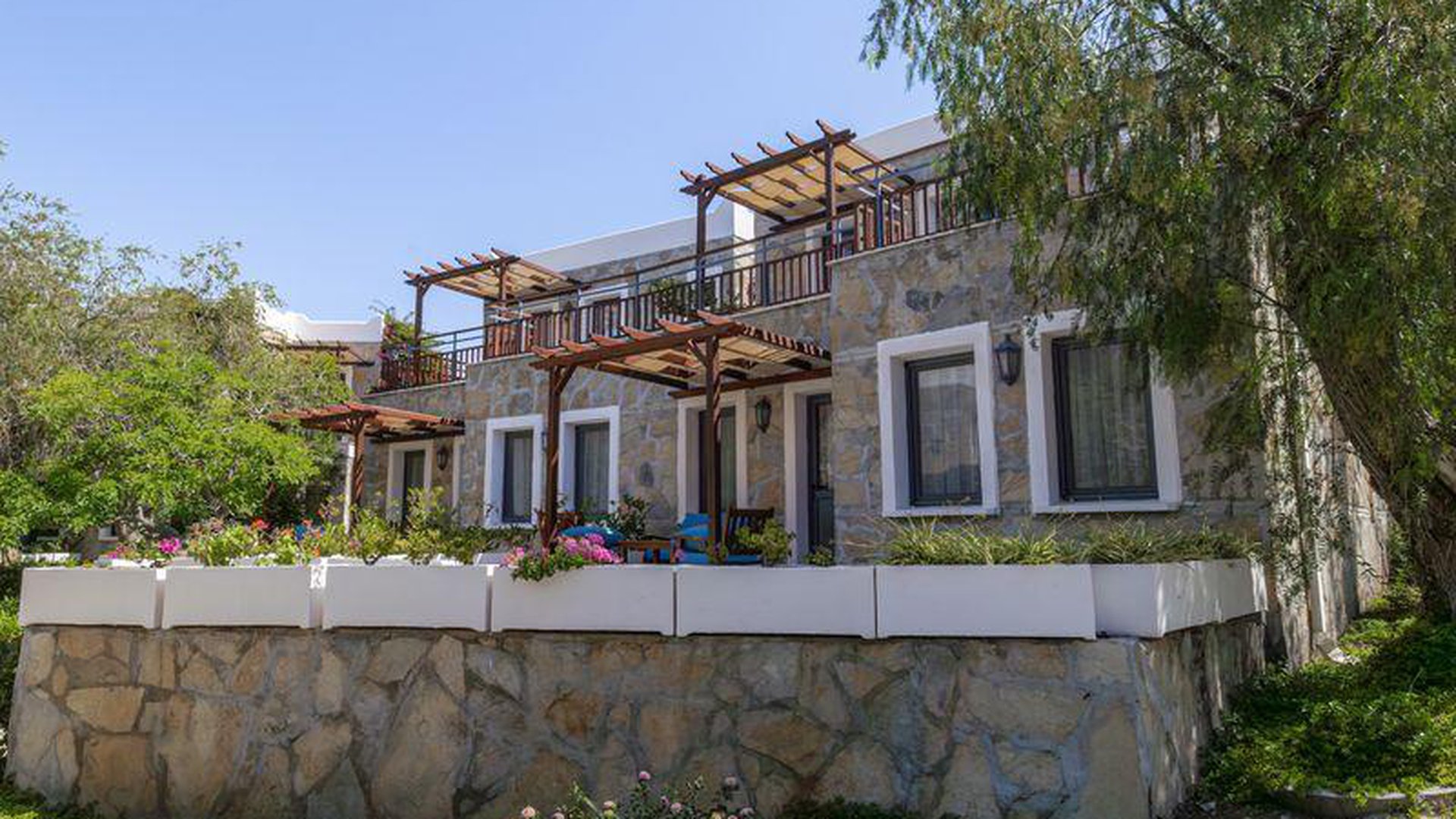 Apie 40 iki Bodrumo oro uosto, apie 16 km iki Bodrumo miesto centro, apie 2 km iki Jaliciftlik gyvenvietės, ant jūros kranto.