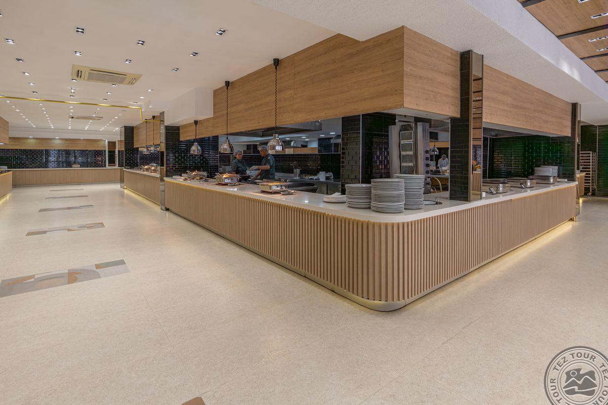 • a la carte restoranai: 3 (turkiškas - pagal išankstinę rezervaciją, 1 apsilankymas nemokamas viešnagės metu; žuvies, itališkas - pagal išankstinę rezervaciją, mokamai)