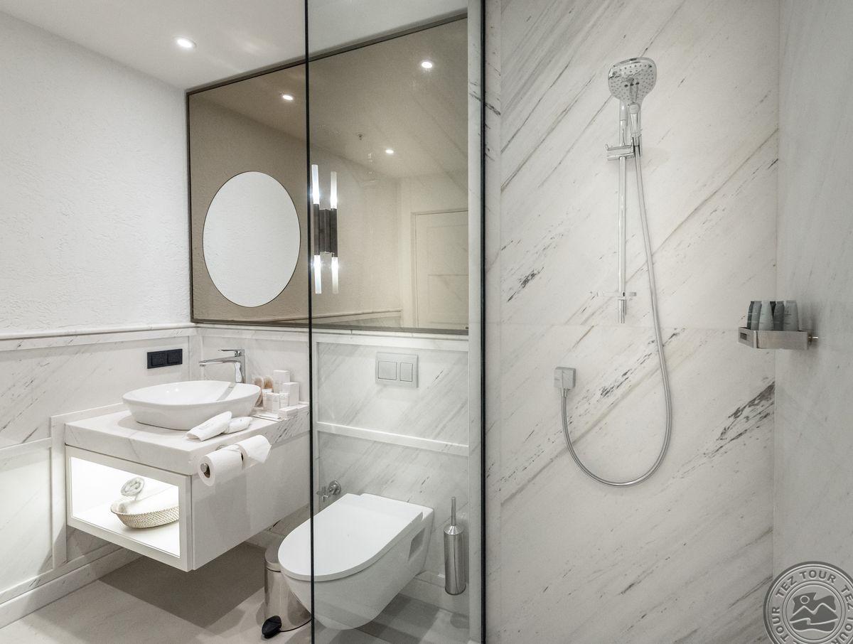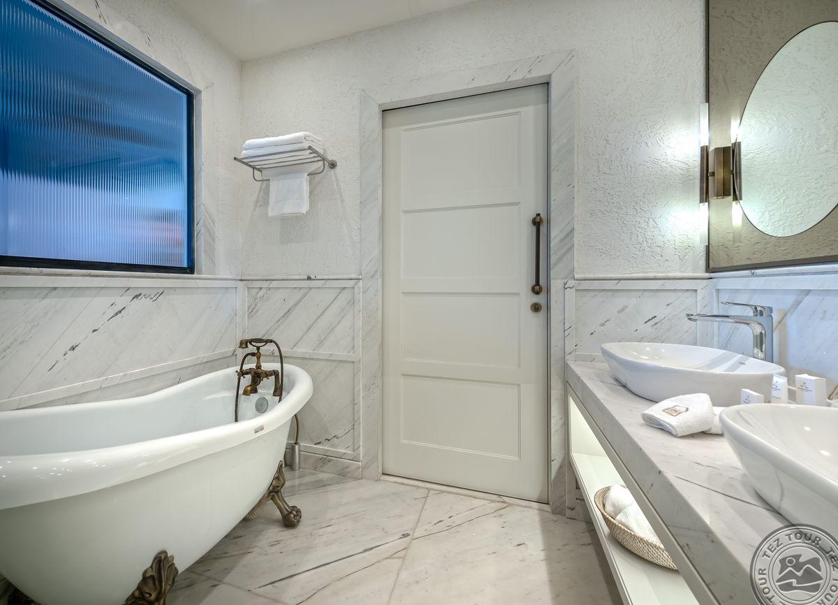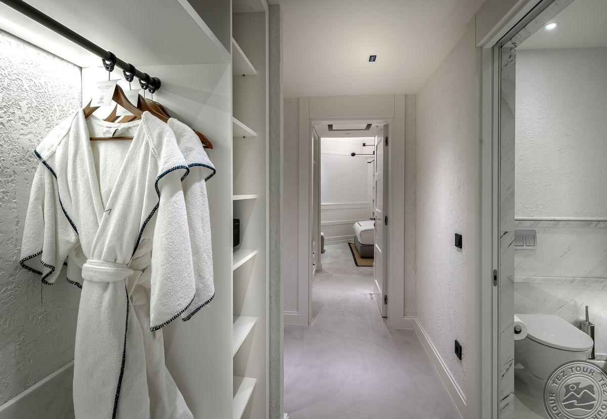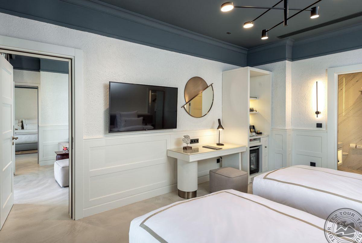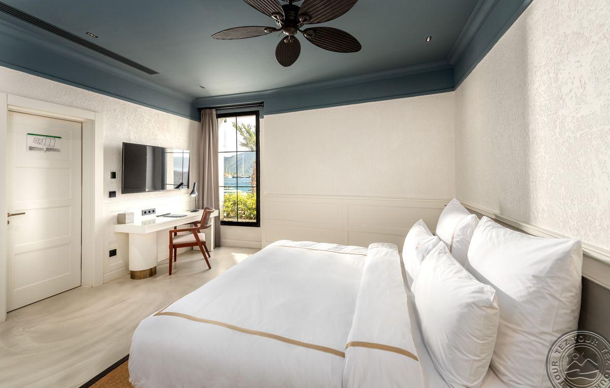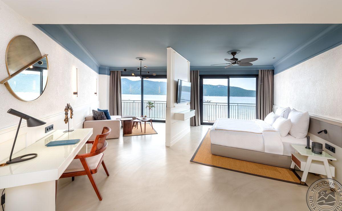 1 Bodrum Suite (vaizdas į jūrą, svetainė ir miegamasis, dvigulė lova, mini virtuvėlė, 2 vonios kambariai (dušas), balkonas, maks. 4 asm., 100 kv.m);