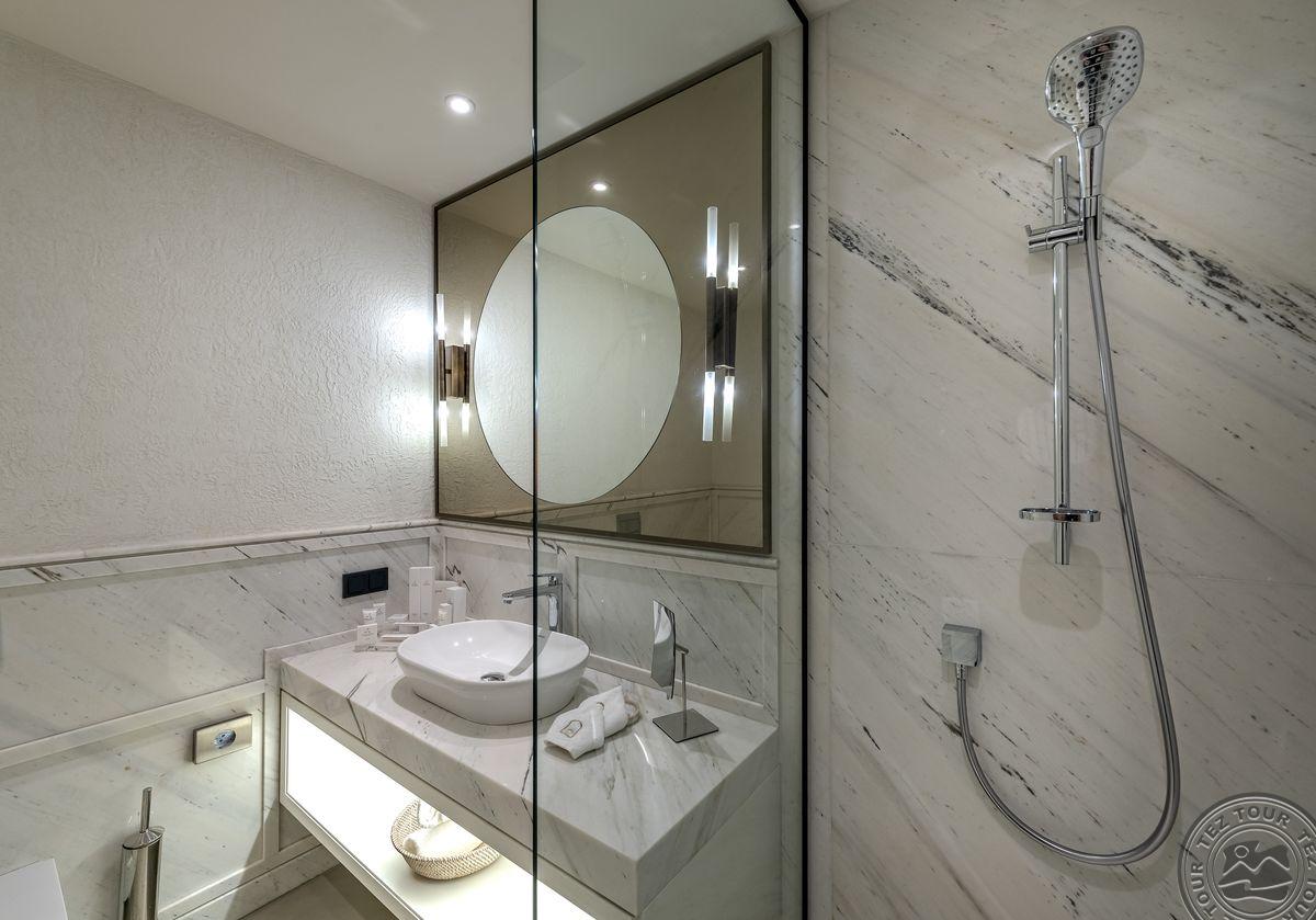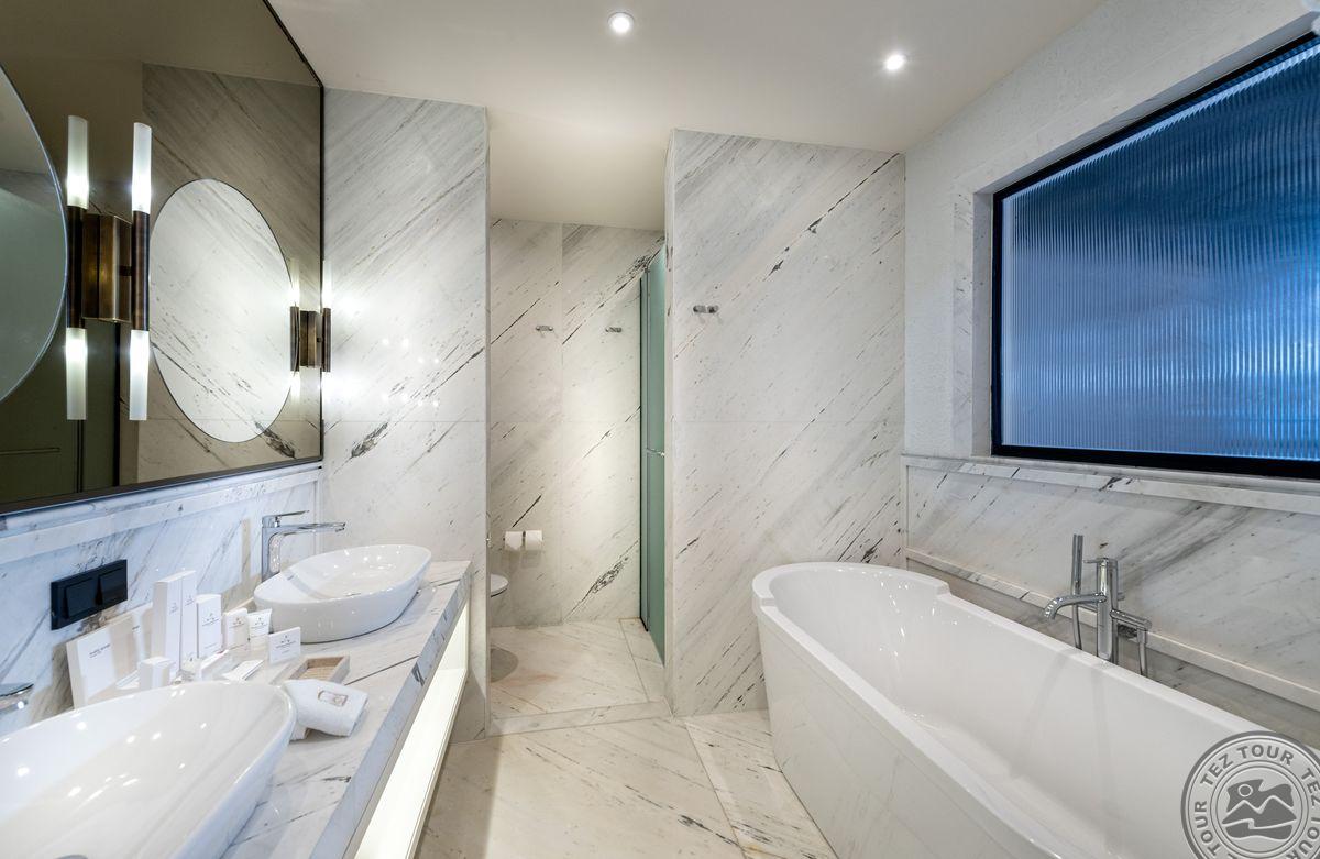 1 Pool Suite (svetainė, 2 miegamieji, dvigulė lova, 3 vonios kambariai (dušas), balkonas, baseinas, maks. 4 asm., 130 kv.m);