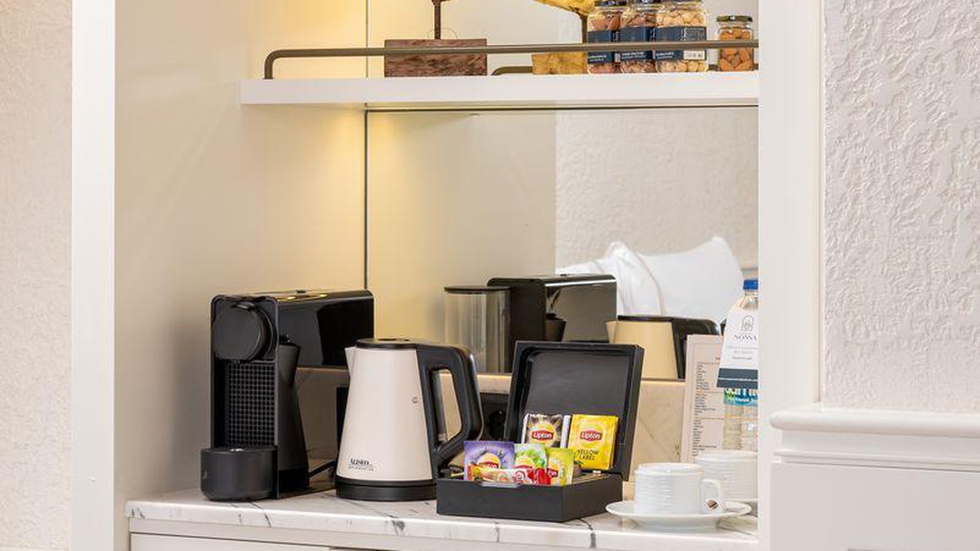 • kavos/arbatos rinkinys yra