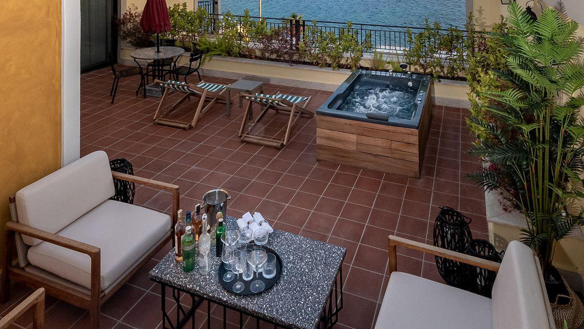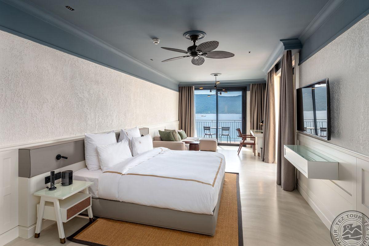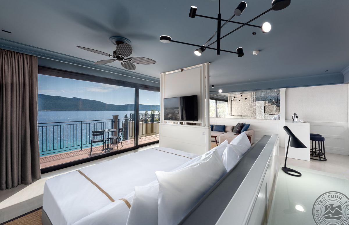 3 Jacuzzi Suite (vaizdas į jūrą, svetainė ir miegamasis, dvigulė lova, mini virtuvėlė, 2 vonios kambariai (dušas), balkonas, maks. 3 asm., 80-110 kv.m);