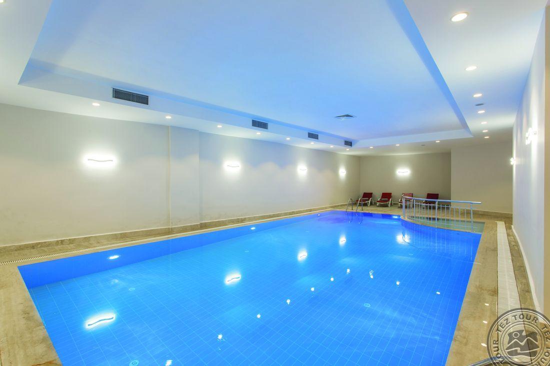 • a la carte restoranai: 1 (turkiška virtuvė, atidarytas 1 kartą per savaitę, pagal išankstinę rezervaciją, savaitinės viešnagės metu vieną kartą galima apsilankyti nemokamai)
