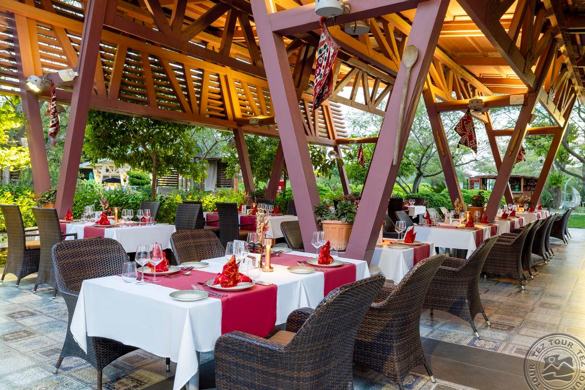 • a la carte restoranai: 7 (japoniškas/kinietiškas, itališkas, turkiškas, žuvies, Steak House, BBQ – pagal išankstinę rezervaciją, rezervacijos mokestis)