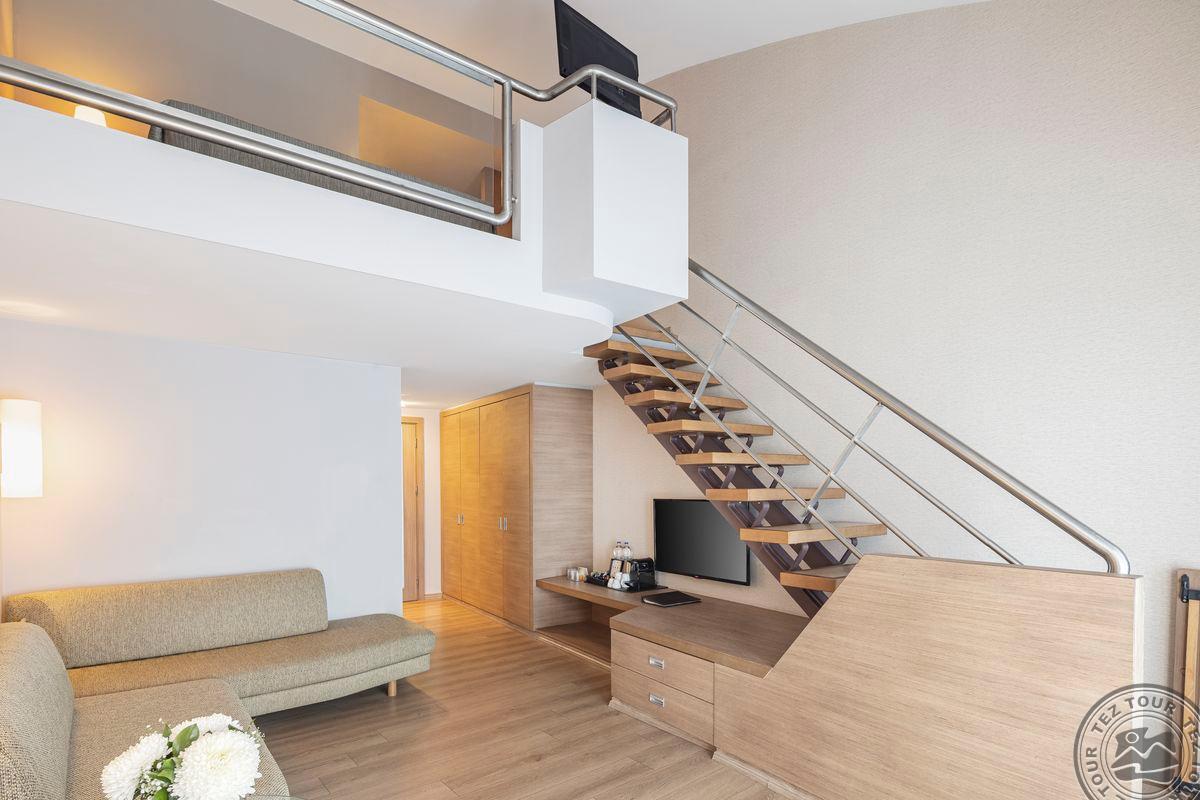 16 Deluxe Family Dublex tipo numerių (su vaizdu į jūrą, 7-me aukšte, 1 svetainė, 1 miegamasis, 2 vonios kambariai (dušo kabina), maks. 4 asm., 47 m2).