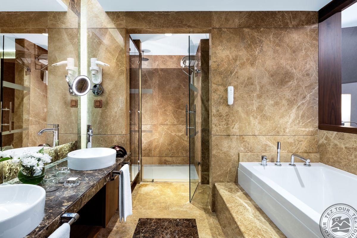 19 dviejų kambarių Deluxe junior suite tipo numerių (svetainė, miegamasis atskirtas durimis su king-size bed tipo lova, 2 vonios kambariai: vienas su vonia, kitas - su dušo kabina, 2 TV, maks. 2+2 asm., 43–56 m2).