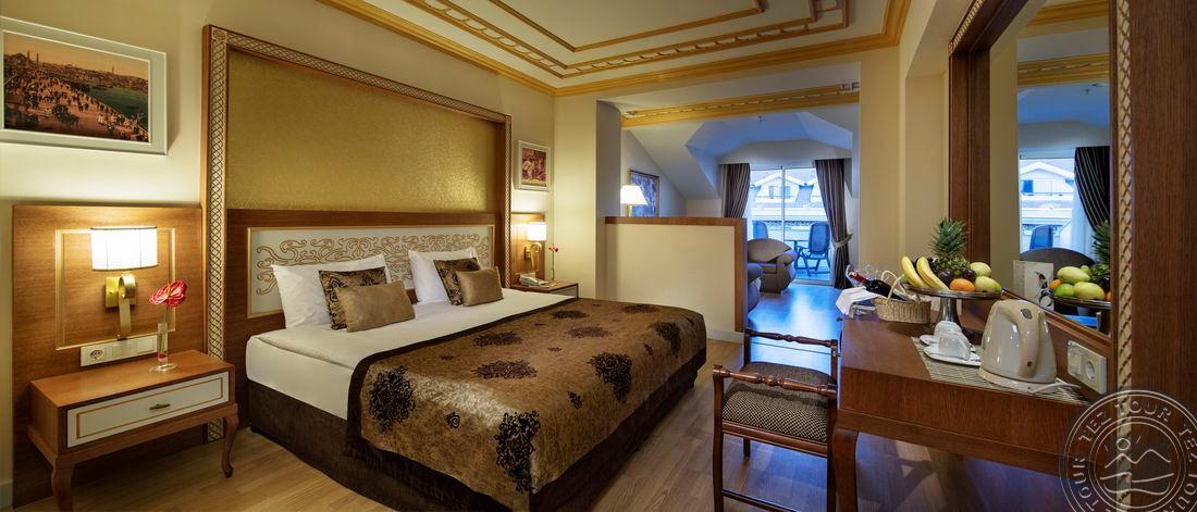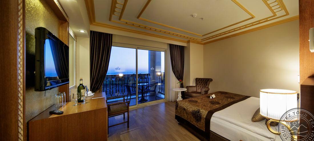 6 dviejų kambarių pasha suite tipo numeriai (2 miegamieji, 1 svetainė, 2 vonios kambariai, iš jų 4 numeriai su virtuve, su vaizdu į jūrą, maks. 4 asm., 92-100 m2).