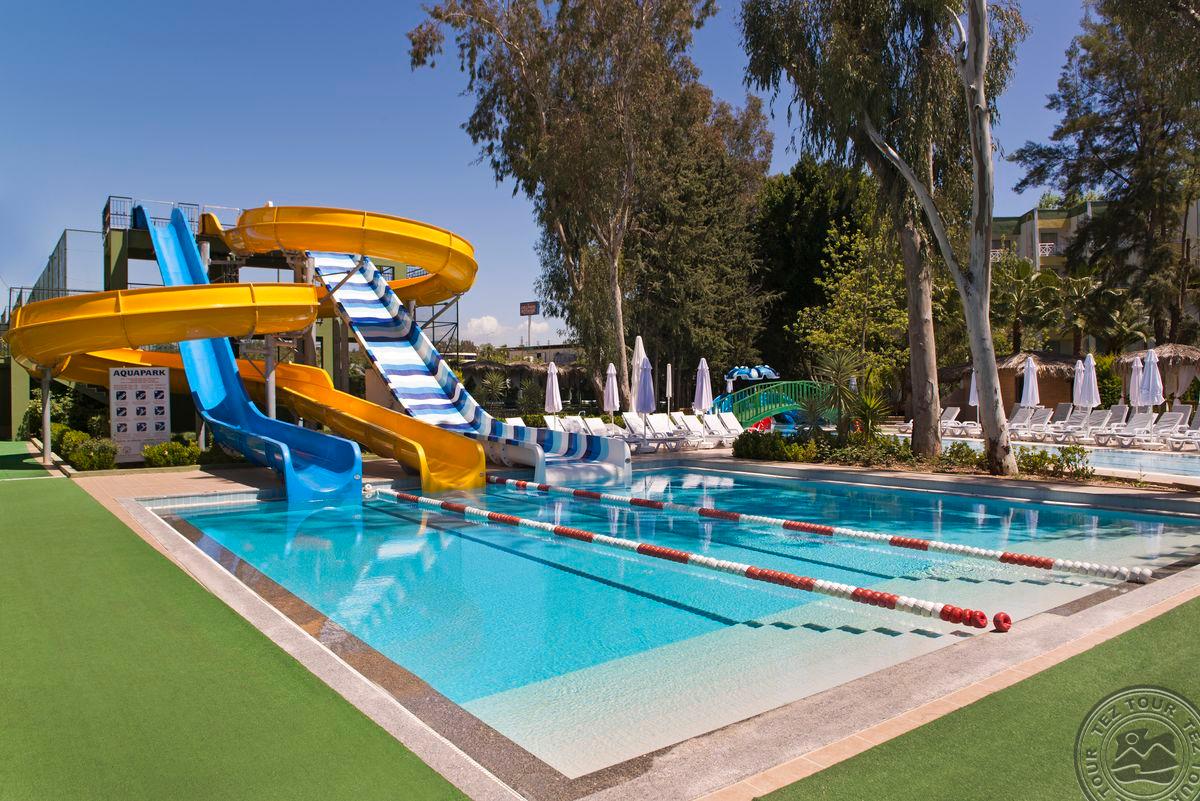 7 baseinai, vienas šildomas lauke. Ale carte nemokamai, bet reikia dieną prieš rezervuoti. Turi nemokamus autobusus iki Alanijos, irgi reikia išankstinės rezervacijos. Du akvaparkai. Žalia, tvarkinga teritorija. Vežimėliai už depozitą apie 20 eur. Kambariai renovuoti, tvarkingi, kabanai nemokamai, yra nuleidimas į baseiną neįgaliesiems. Vien lietuviai. Jaukus viešbutis. Didelis snack baras.