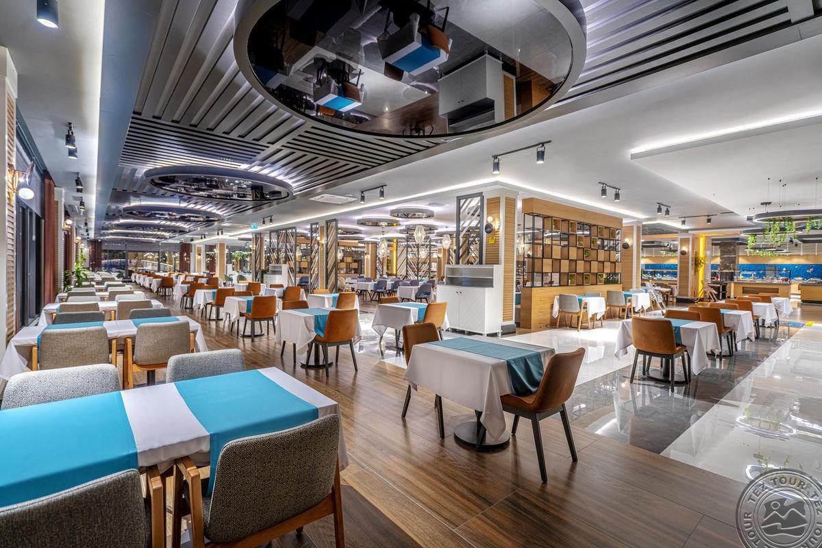 Už teritorijos ribų tik kiti viešbučiai. 3 baseinai lauke, du viduje, kalneliai. Vidinis baseinas šildomas, lauke ne. Family Room padarytas kampinis kaip 2 atskiri kambariai. 2 balkonai, 2 TV, mini baras papildomas kasdien. Matėme Swim Up, tokių kambarių yra 23 vnt, skirti poilsiui tik suaugusiems. Kambariai visi jaukūs. 3 a la carte nemokamai. 1 a la carte extra. UAI yra importiniai gėrimai. Geras viešbutis už gerą kainą.
