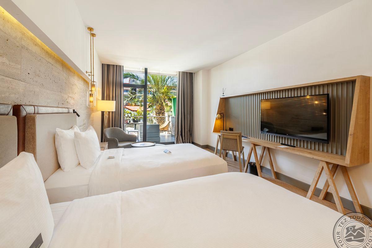 35 deluxe room tipo numeriai (miegamasis, vonios kambarys, terasa, maks. 3 asm., 33 m2).